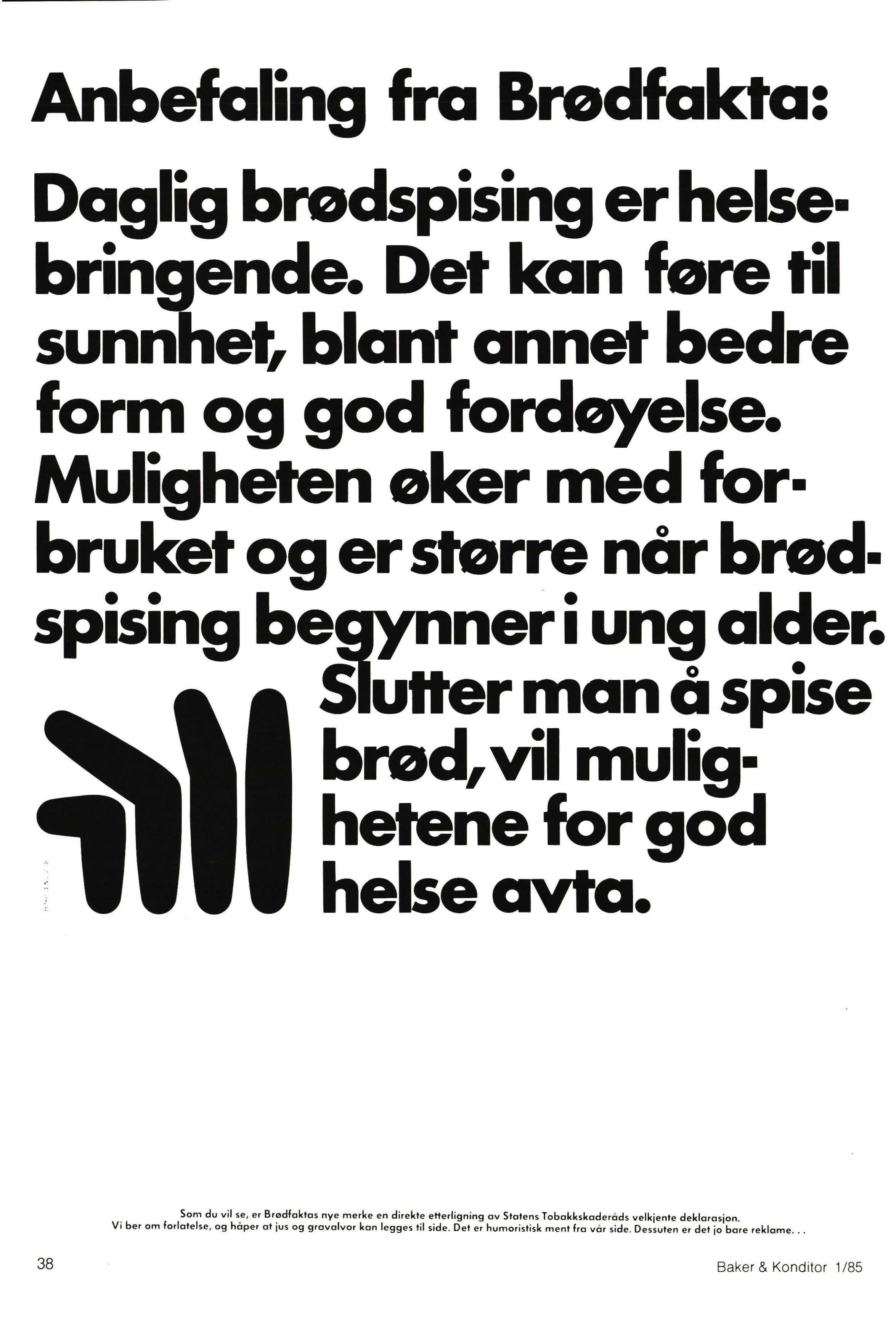 Årsmeldingen fra Statens Ernæringsråd i 1982, viser klart at det nytter å informere: Mer enn 80 prosent av den norske befolkningen vet i dag at det er ernæringsmessig riktig å spise mere brød - fortrinnsvis grovt brød. I 1978 var prosenttallet 58. I 1980 steg det t i l 77 og altså 80 prosent i 1982. Dette kan også bekreftes