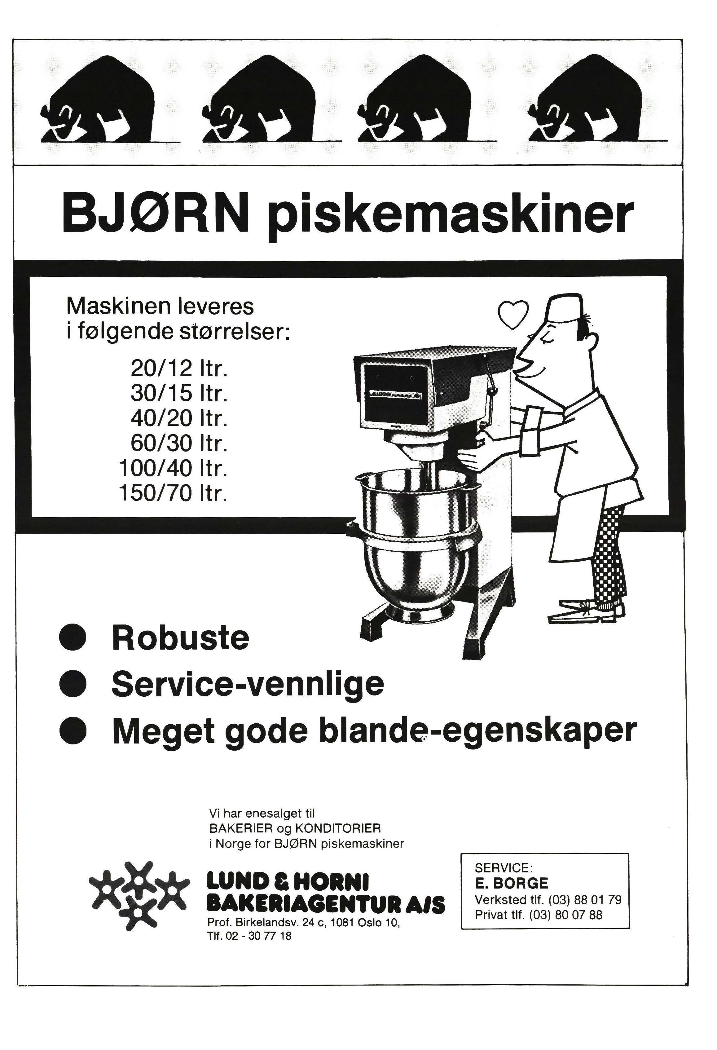 Vi har enesalget til BAKERIER og KONDITORIER i Norge for BJØRN piskemaskiner