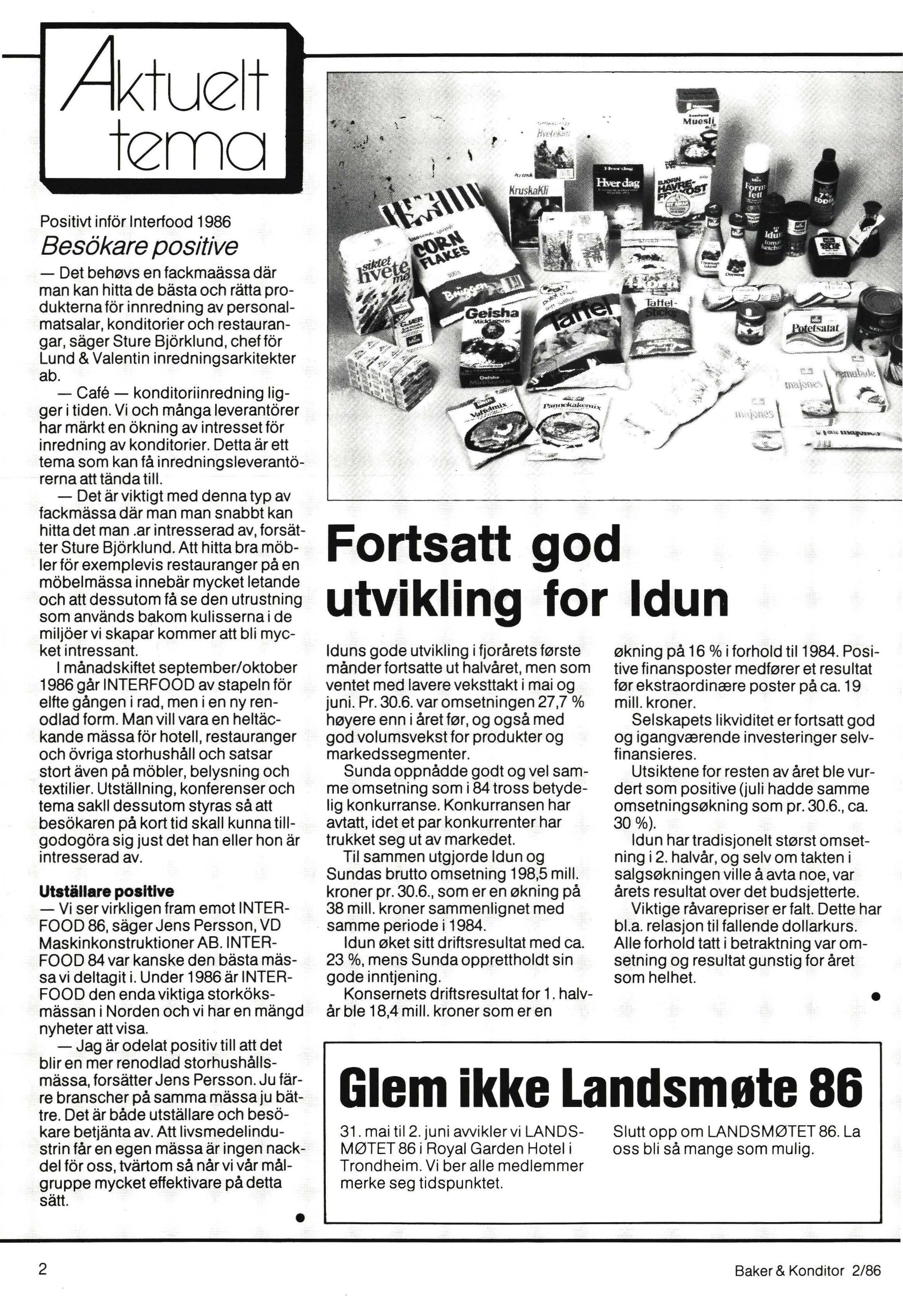 Utstillare positive - Vi serv irkl igen fram emot INTERFOOD 86 , sager Jens Persson , VD Mask inkonstrukt ioner AB INTERFOOD 84 var kanske den basta massa vi deltagit i. Under 1986 år INTERFOOD den enda viktiga storkoksmåssan i Norden och vi har en mångd nyheter att visa . - Jag år ode lat pos itiv t i ll att det blir en mer renodlad storhushållsmåssa, forsåtter Jens Persson. Ju fårre branscher på samma måssa j u båttre . Det år både utstållare och besokare betjånta av Att livsmedelindustrin får en egen massa år ingen nackdel for oss , tvårtom så når vi vå r målgruppe mycket effekt ivare på detta satt