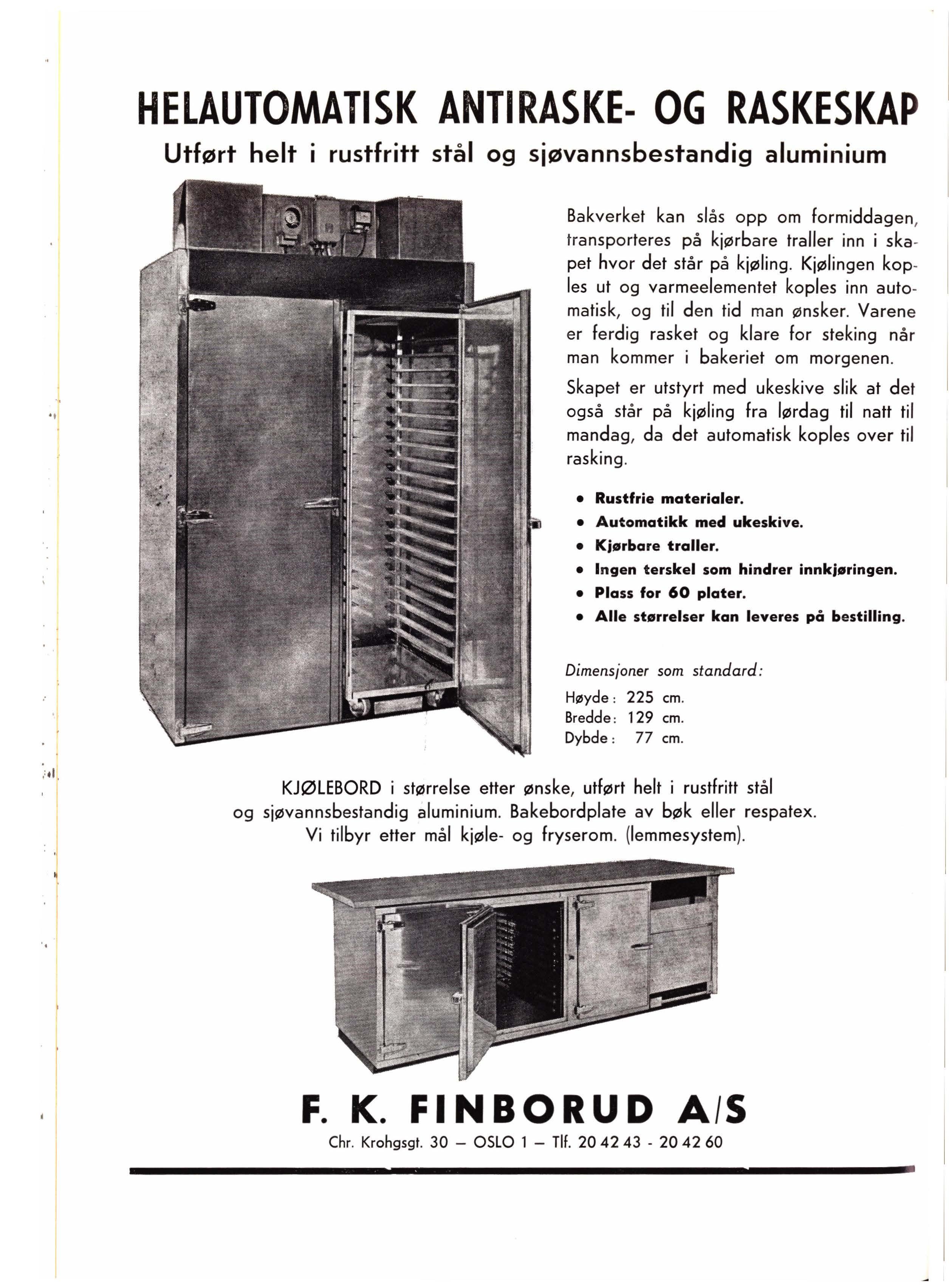 Maskiner og utstyr for bakerier og konditorier Per Andersen & Co "