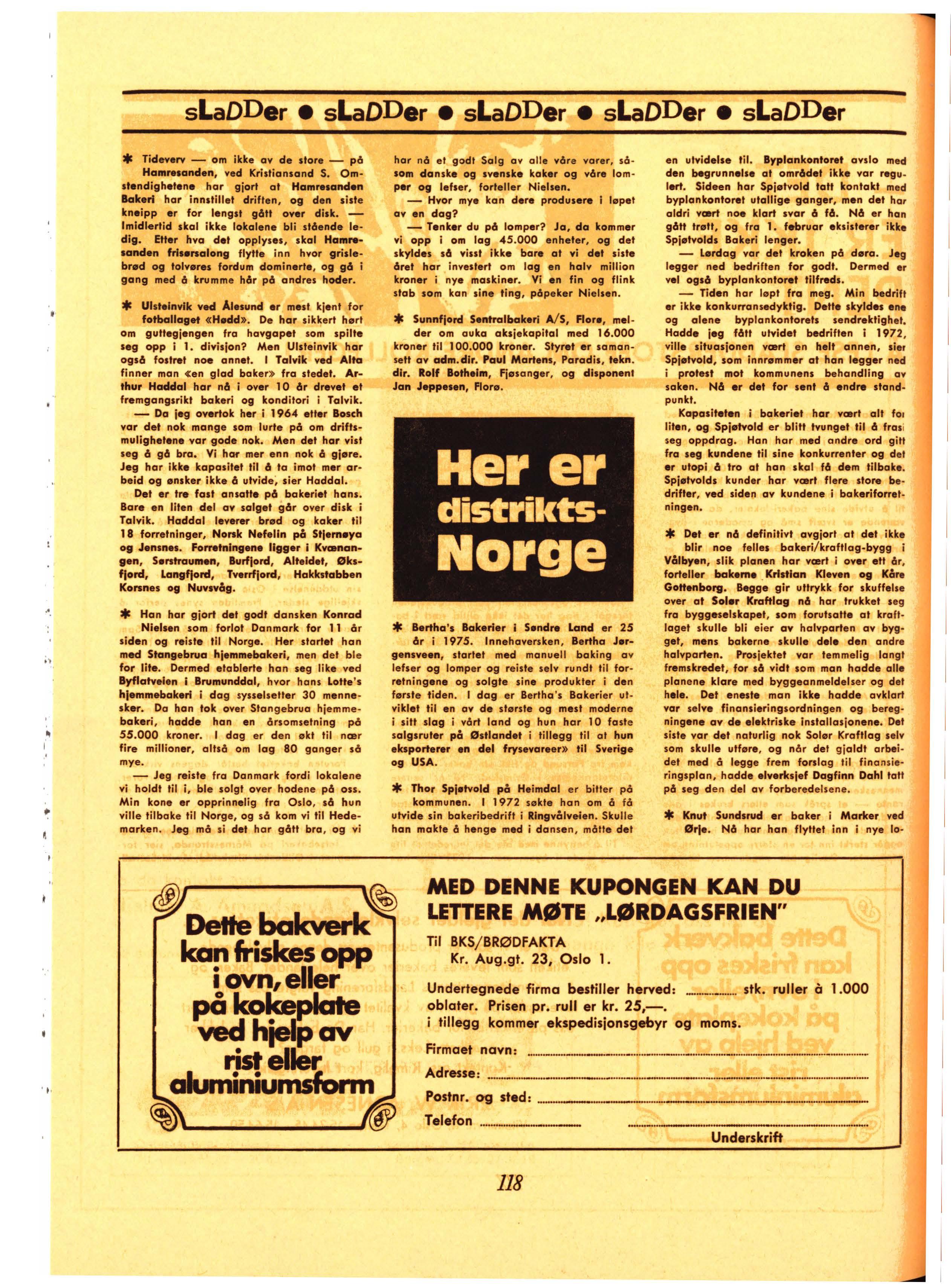 * Ulsteinvik ved Ålesund e r mes t kj e nt for fotballaget « Hødd ». De har si kk er t hø rt om guttegjengen fro havgapet som s pille seg opp i 1. d ivis jon? Me n Ulst ei nvik har også fo s tre t noe an net I Talvik ved Alta fi nner man <en glad bak er » fra stedet Ar• thur Haddal har ne!, i over 1 0 år drevet et fremgangsr ikt baker i og kond itor i i Talv i k - Da jeg overtok her i 1964 eller Bosch var det nok mange som lurte på om driftsmulighetene var gode nok. Men del har visl seg å gc!, bra Vi hor mer enn nok 6 gjøre Jeg ha r ikke kapasitet til c!, ta imot mer arbeid og ønsker ikke å utvide, sier Haddal