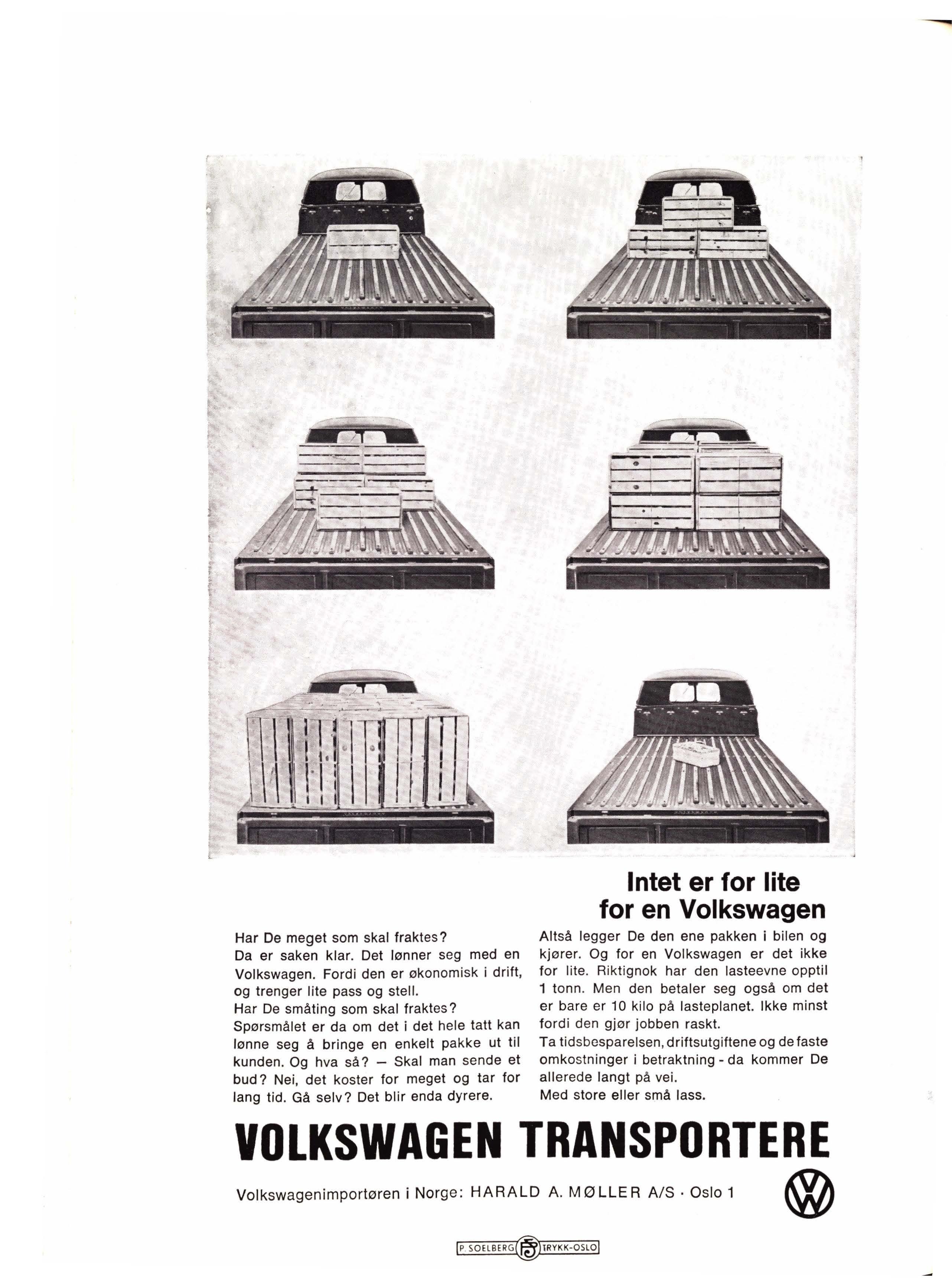 Altså legger De den ene pakken i bilen og kjører. Og for en Volkswagen er det ikke for lite Rikt i gnok har den lasteevne opptil 1 tonn Men den betaler seg også om det er bare er 10 kilo på lasteplanet. Ikke minst fordi den gjør jobben raskt.