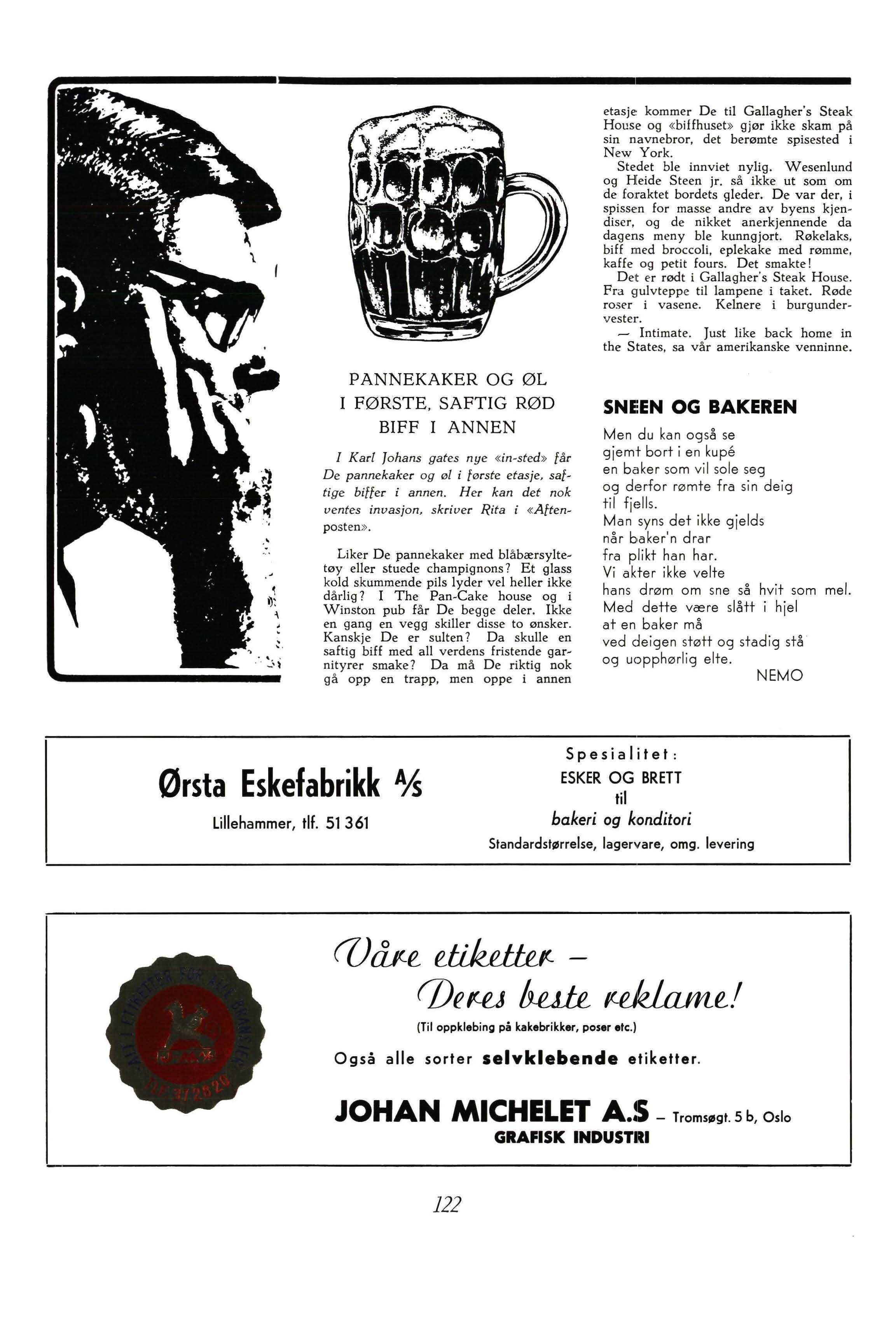 Nestformann : Bakerme ste r Per Samson, Gyldenløvesgt 8, Oslo 3. Tlf. 56 56 80 - privat 56 33 75
