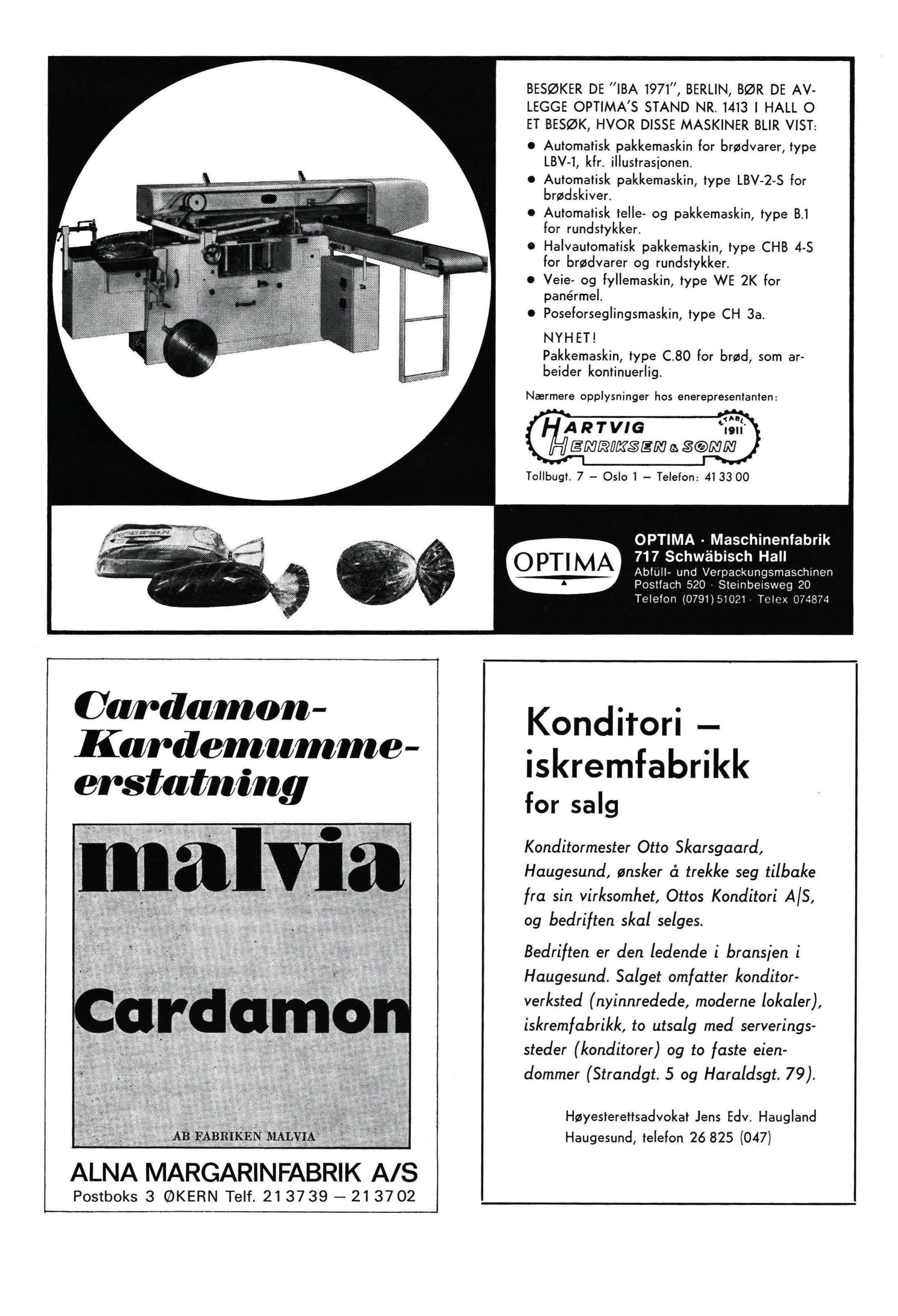 Stadig flere i vårt fag har nå skaffet seg tekn isk utstyr - man kan kalle det avanserte «jernk uer » - som gjør det mulig å lage fullverdig krem av usaltet me ierismør, og det faller b illigere enn å bruke kremfløte. Dette betyr derfor mye for oss, og i neste omgang for forbrukerne. Det bl i r et spørs mål om priser, sie r bakermester Land vik, som og så finner henvisningen til bestemmelsenr som gjaldt før våren 1969 overraskende. - Jeg har brukt usaltet s mør til krem i flere år og har ikke møtt vanskeligheter med kjøp før nå