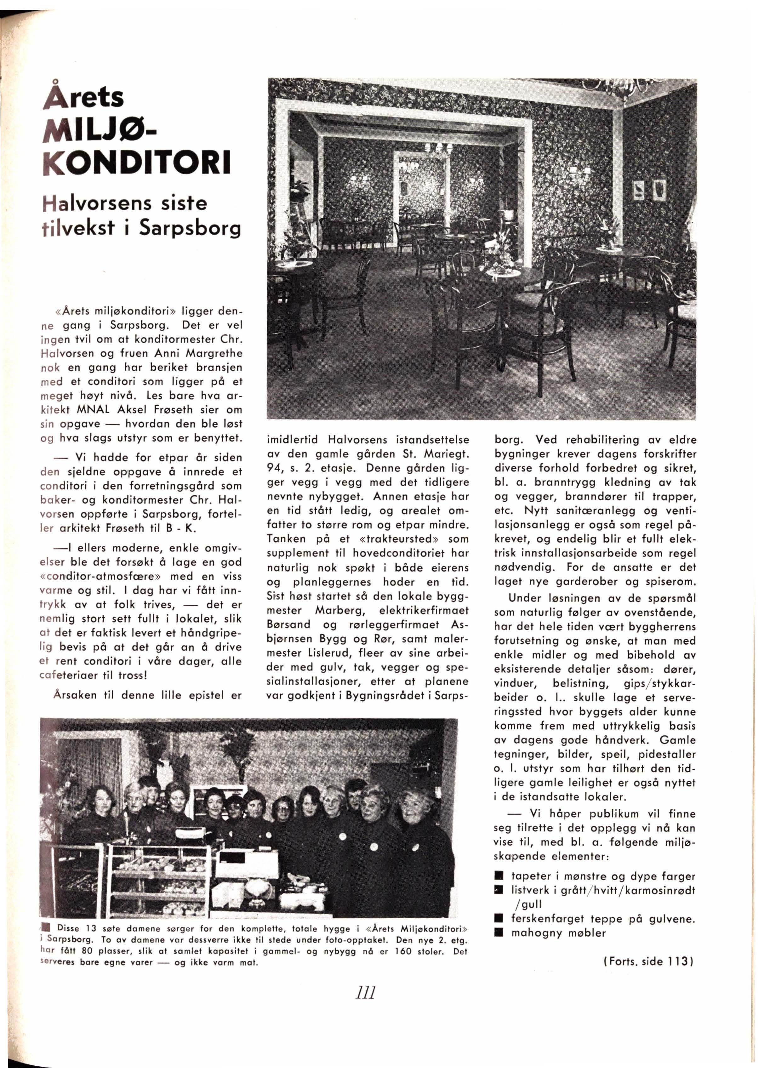 I dette interiøret har vi lagt vekt på at moderne, funksjonell innredning ikke nø dvendigvis må være kald og livløs Den varm e gløden som emaljeplatene o g -flisene bidrar med, virker nesten hjemlig på våre kunder. _ Ornamentb åndene understreker det aktive håndverksmiljøet. Deres utvalg av gode kaker blir sikkert revet bort!