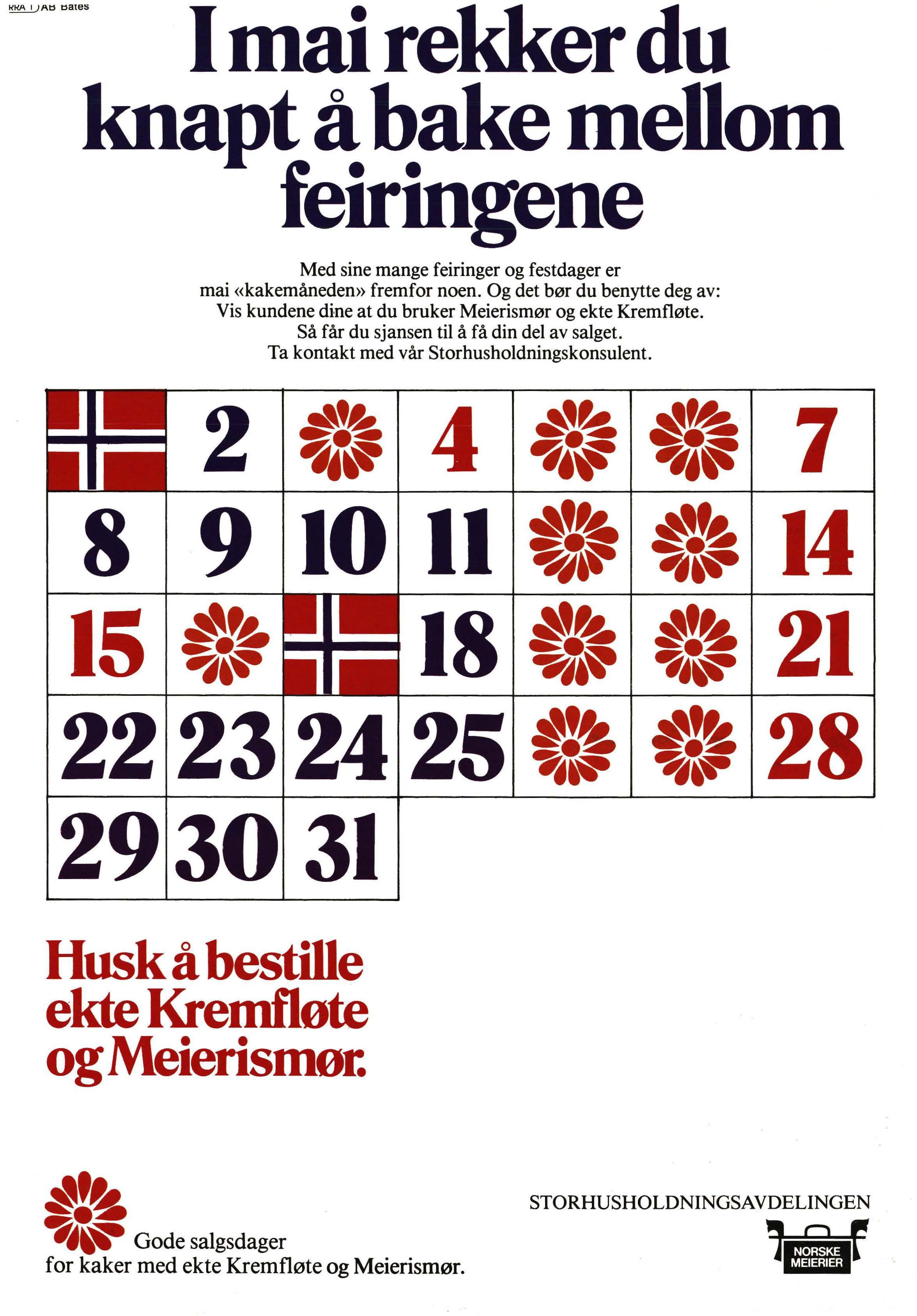 Med sine mange feiringer og festdager er mai «kakemåneden» fremfor noen. Og det bør du benytte deg av: Vis kundene dine at du bruker Meierismør og ekte Kremfløte. Så får du sjansen til å få din del av salget. Ta kontakt med vår Storhusholdningskonsulent.