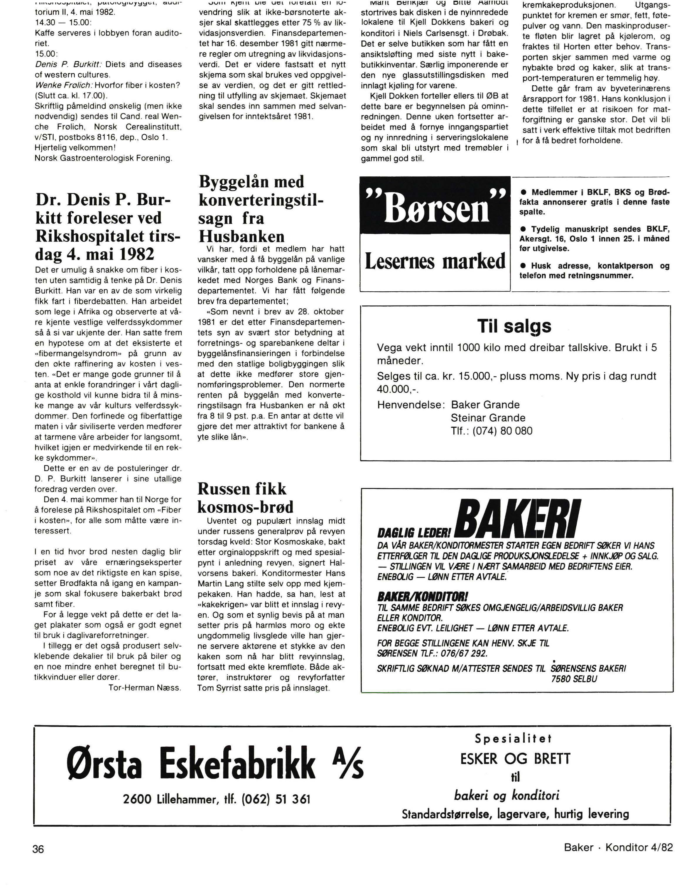 Baker- og Konditormestrenes Landsforening arrangerer fellestur til Nordbag-82 i Herning i samarbeide med Ving Reiser Reisebyrå i tiden 24 / 4 til 26 / 4 1982