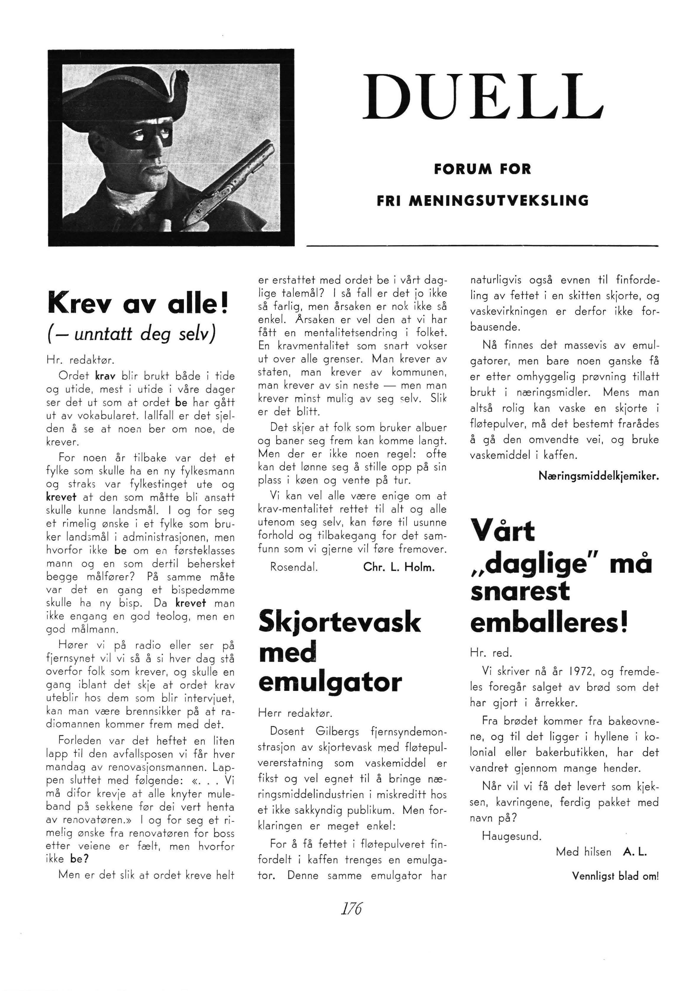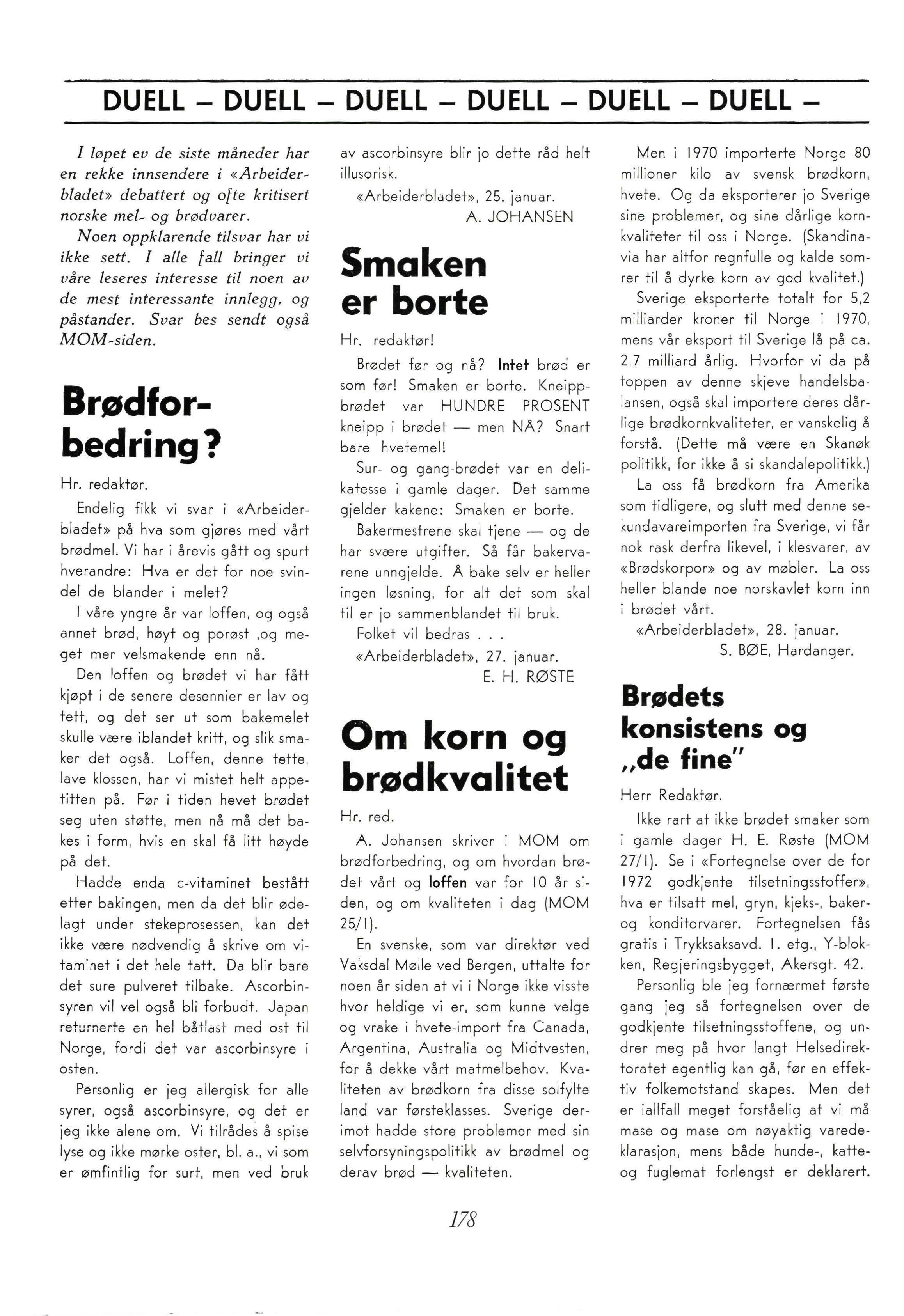 Ikke rart at ikke brødet smaker so m i gamle dager H . E. Røste (MOM 27/1). Se i « Fortegnel se o ver de for 1972 godkjente tilsetnings stoffer » , hva er til sa tt mel, gryn , kjeks-, bakerog konditorvarer. Fortegnel sen fås gratis i Trykk saksa vd. I. etg . , Y-blokken, Regjeringsbygget, Aker sg t. 42