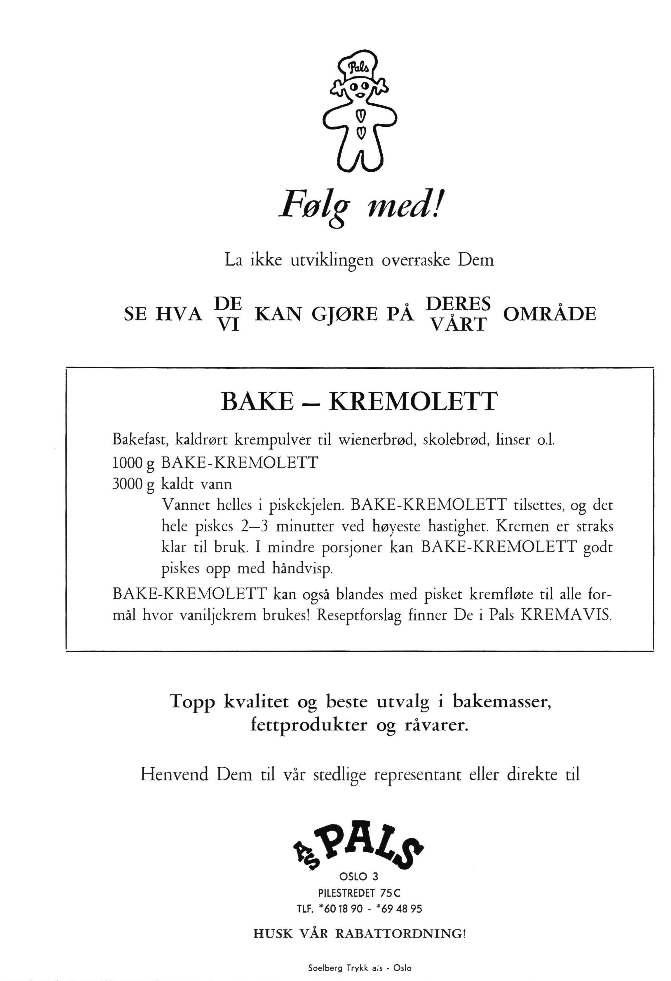 Denne omslagsside er stillet til disposisjon for Brødfakta av Norsk Mølleforening ved Bjølsen A/ S , Aktieselskabet Christian sands Møller, Fritzøe Møller, A/ S Hæggernæs Valsemølle , Peter Larsen & Co. A/ S, Lysaker Mølle I /S, Moss Aktiemøller, I. C Piene & Søn A/ S, Skiens Aktiemølle , Aksjesselskapet Tou, A/S Vaksdal Mølle. -