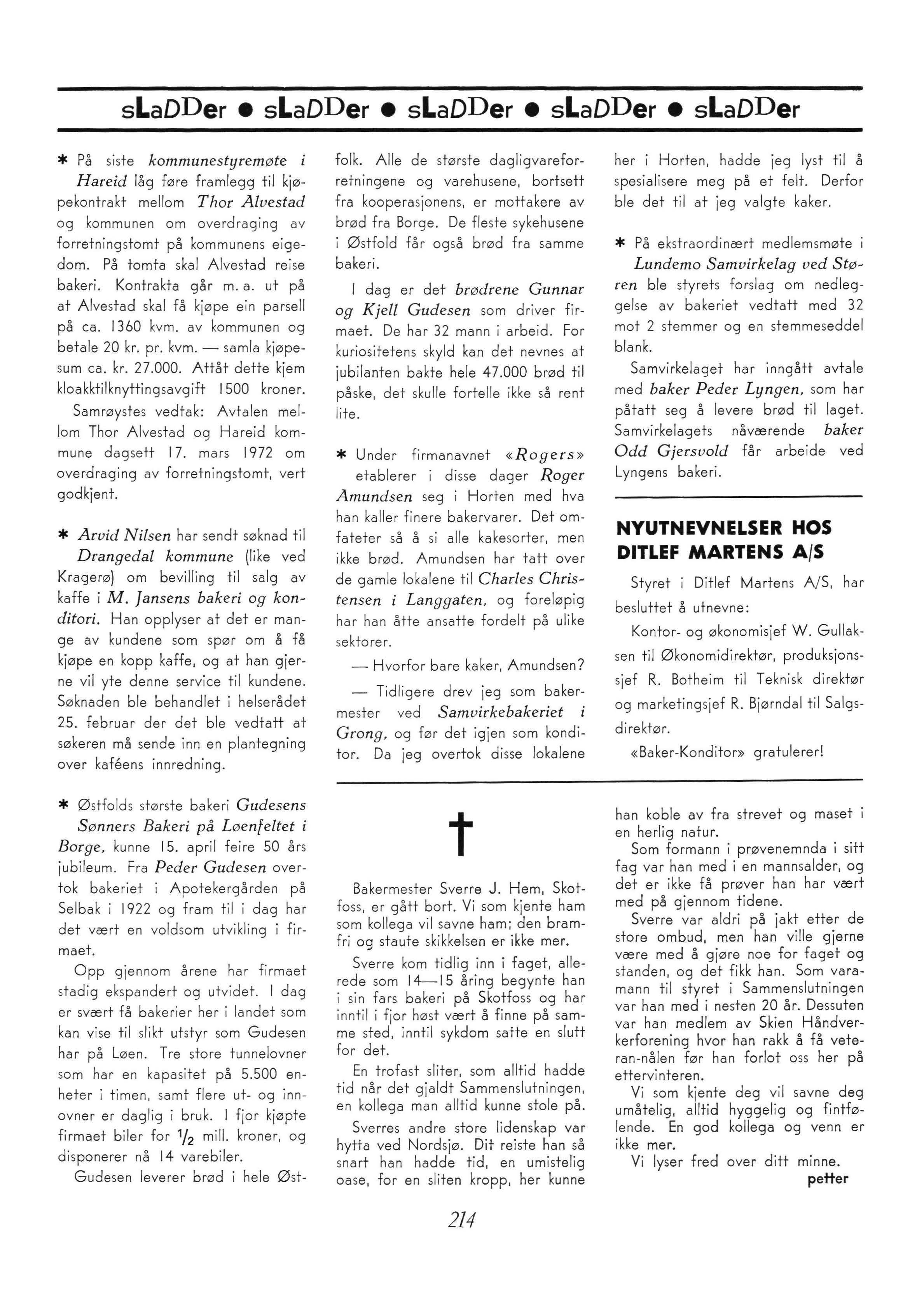 tBakermester Sverre J. Hem, Skotfoss, er gått bort. Vi som kjente ham som kollega vil savne ham; den bramfri og staute skikkelsen er ikke mer.