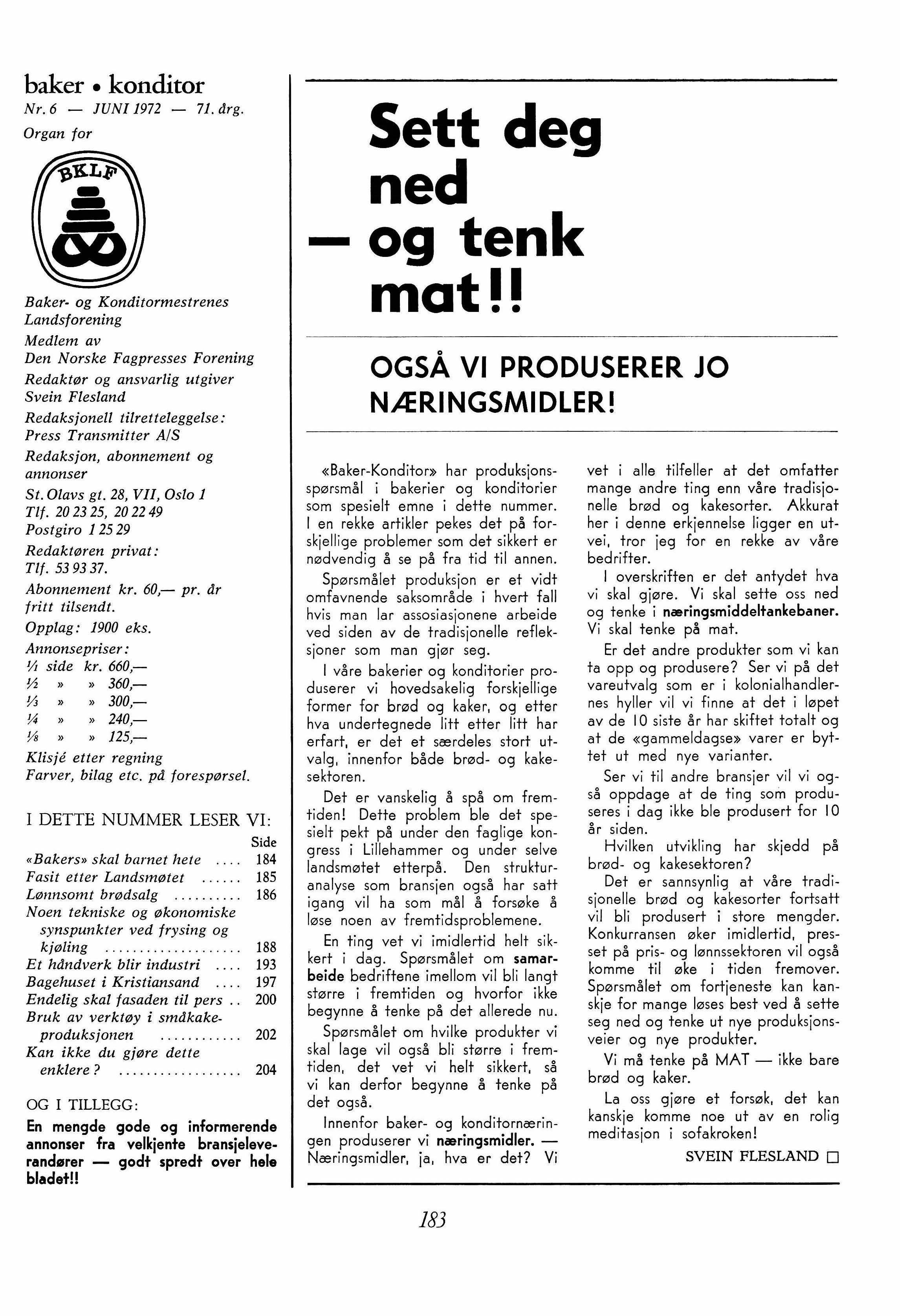 «Baker-Konditor» har produksjonsspørsmål i bakerier og konditorier som spesielt emne i dette nummer. I en rekke artikler pekes det på forskjellige problemer som det sikkert er nødvendig å se på fra tid til annen.