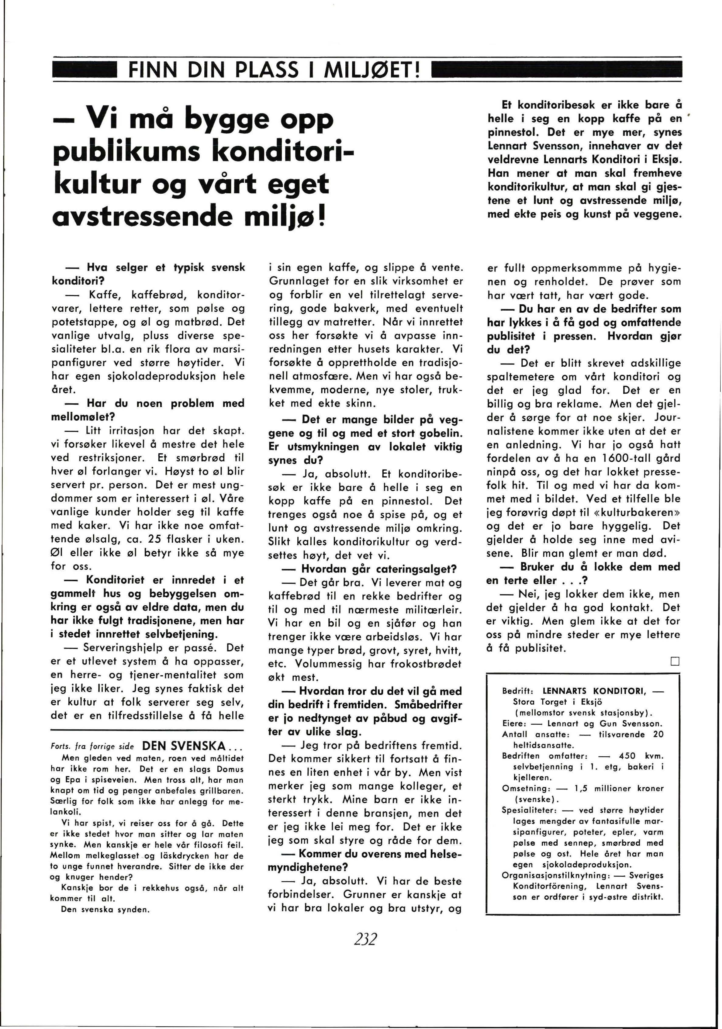Vi er selvsagt takknemlige for at « B-K » vil ha inn noe om vår lokale suksess, men vi tror også at å utveksle ideer og vise hverandre hva som kan lages til og gjerne da med et tilsnitt av lokalt miljø og kultur, kan ha stor betydning når man tenker på å lage til et konditori.