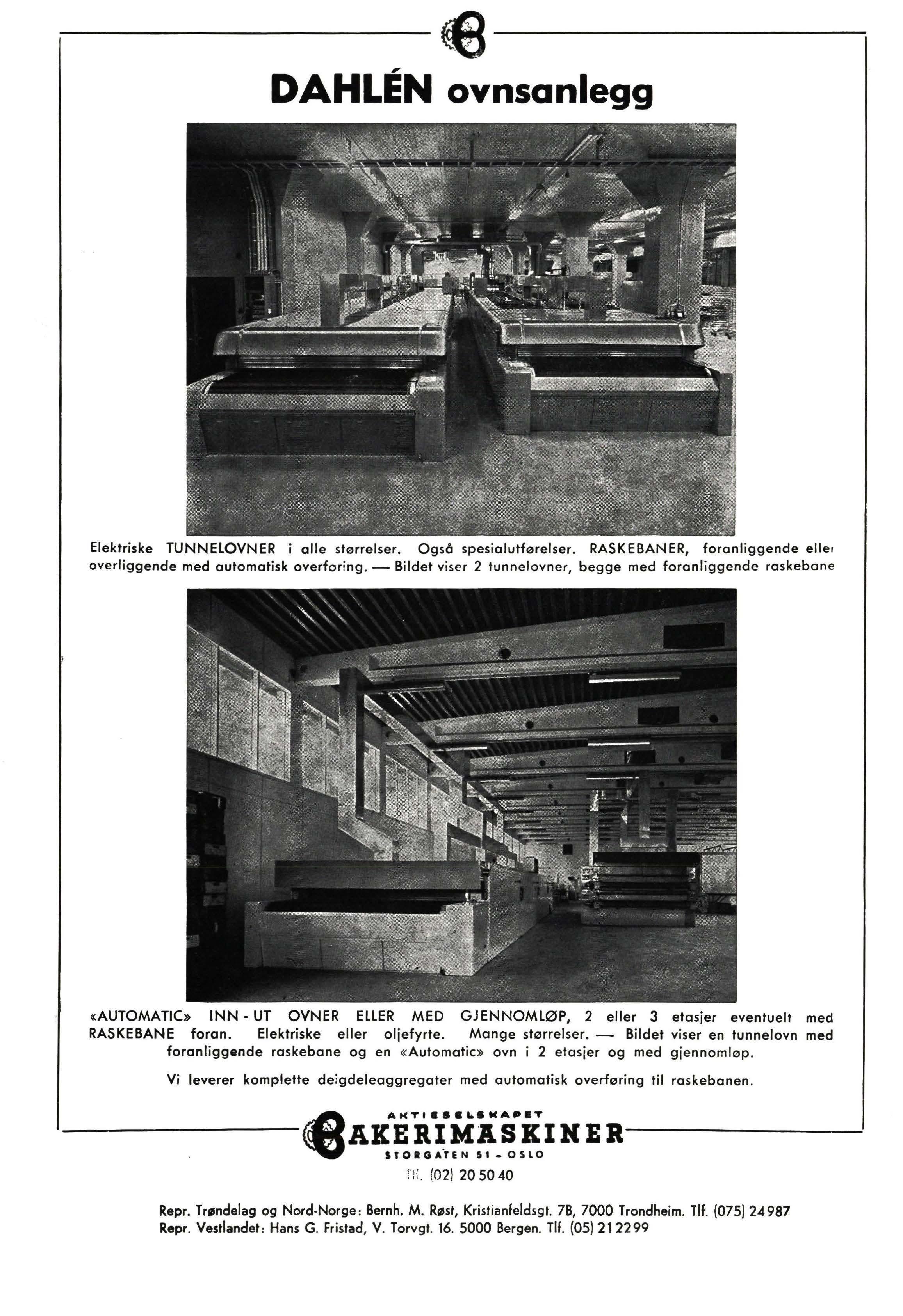 Spesialfirma i innredninger og salgsfremmende hjelpemidler for bakerier, konditorier, restauranter og hoteller. Markvn. 42, Oslo 5.