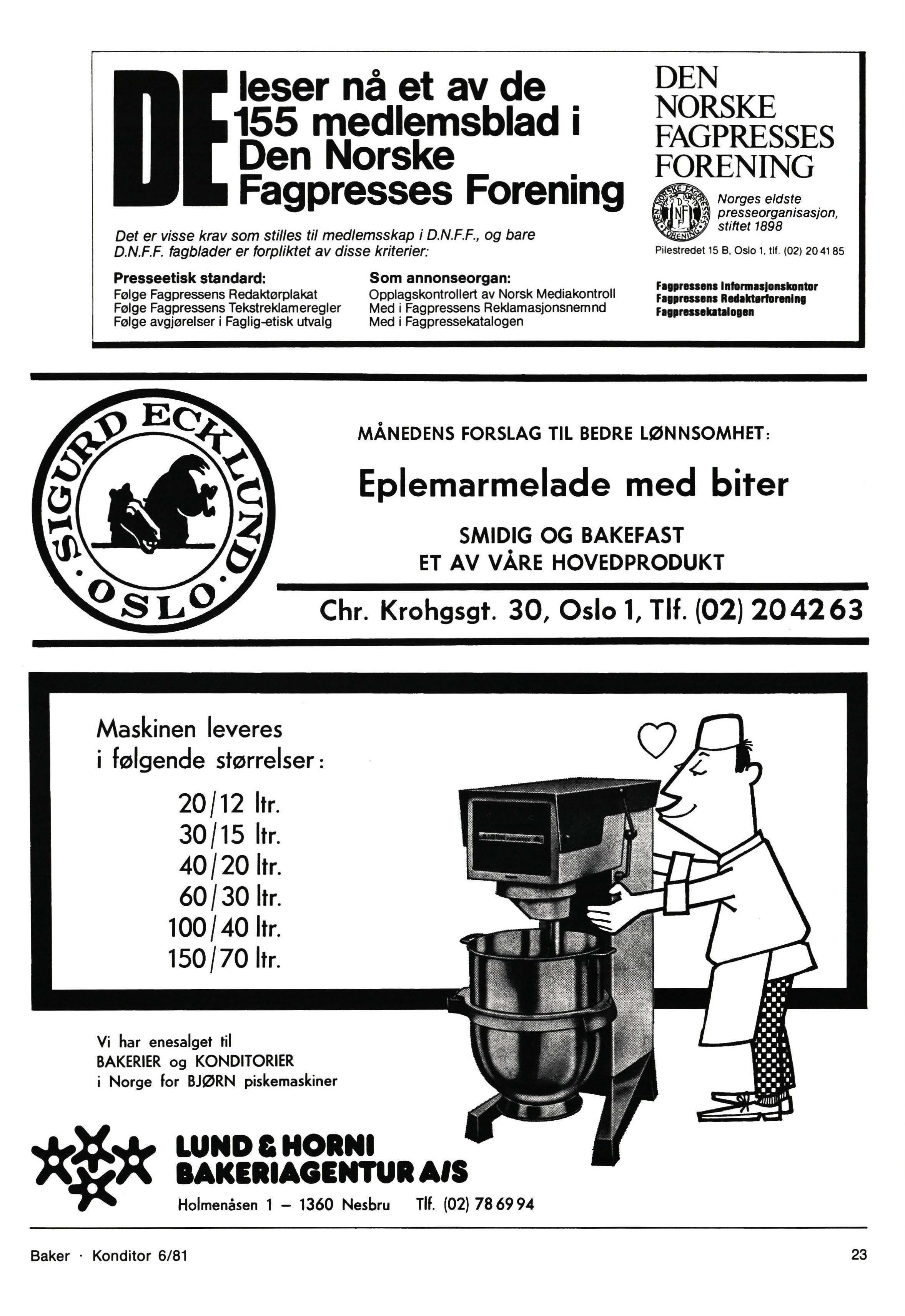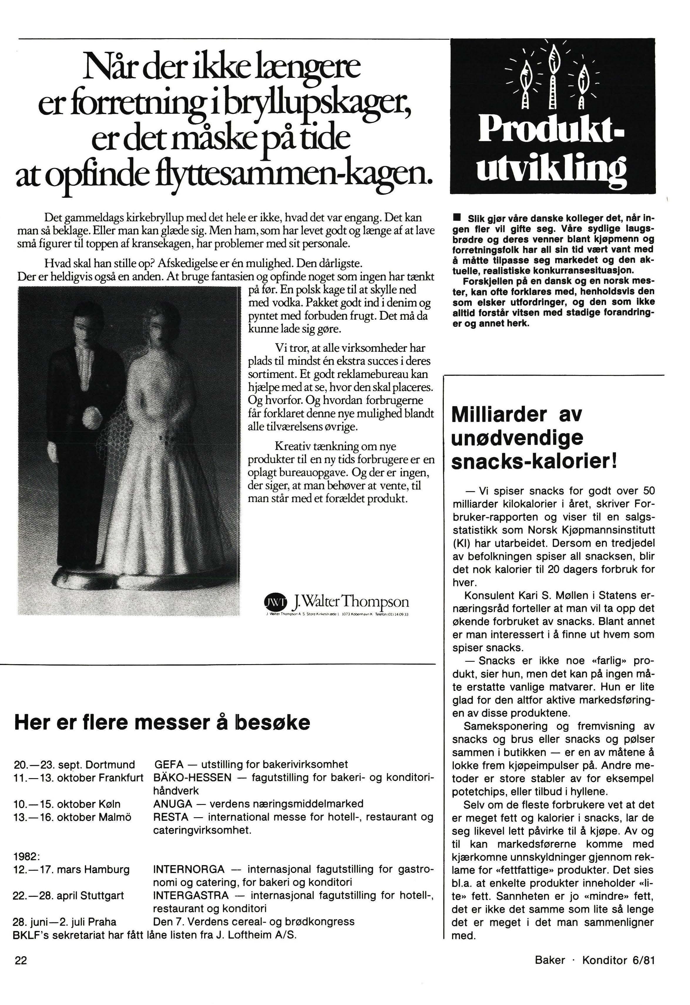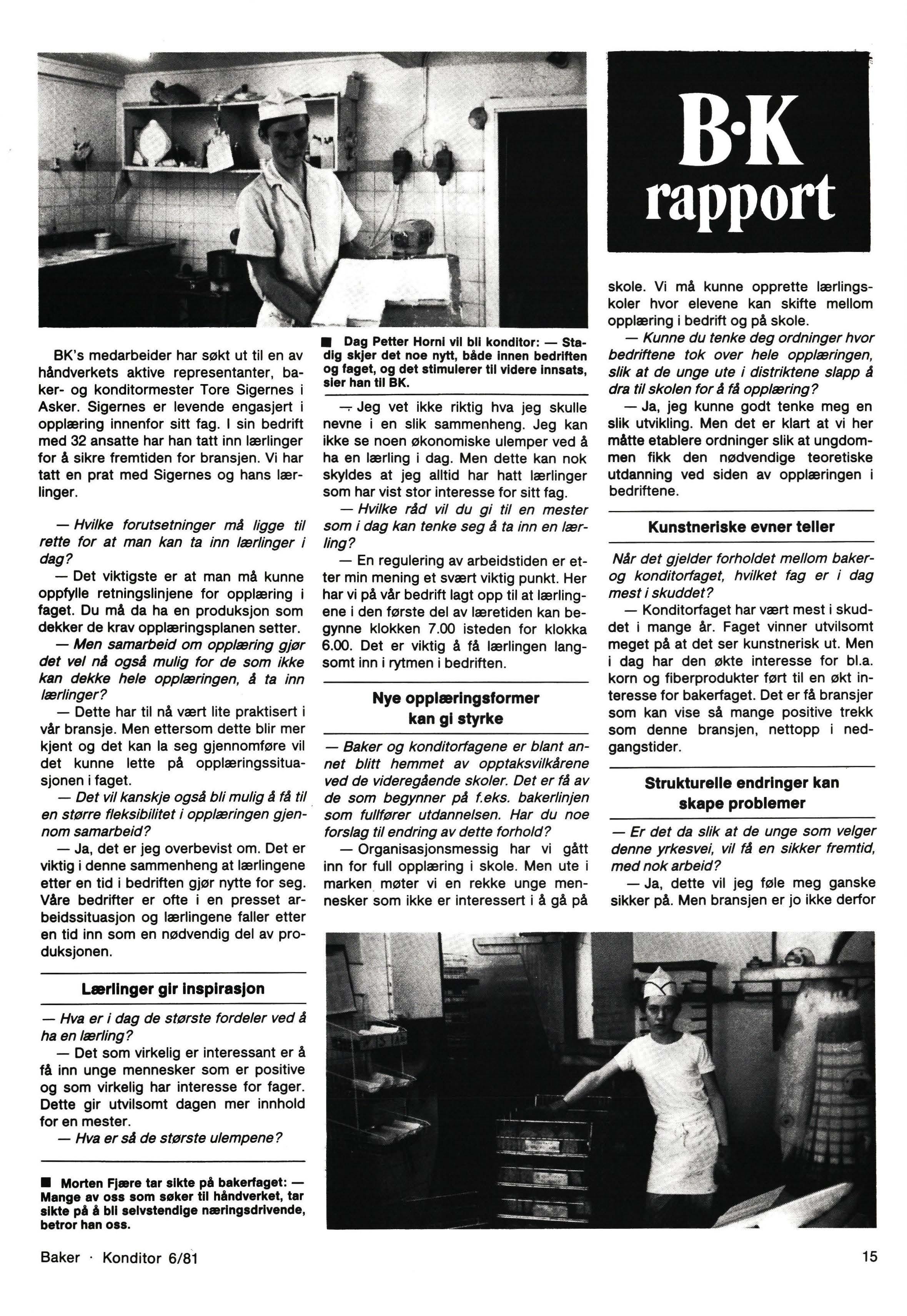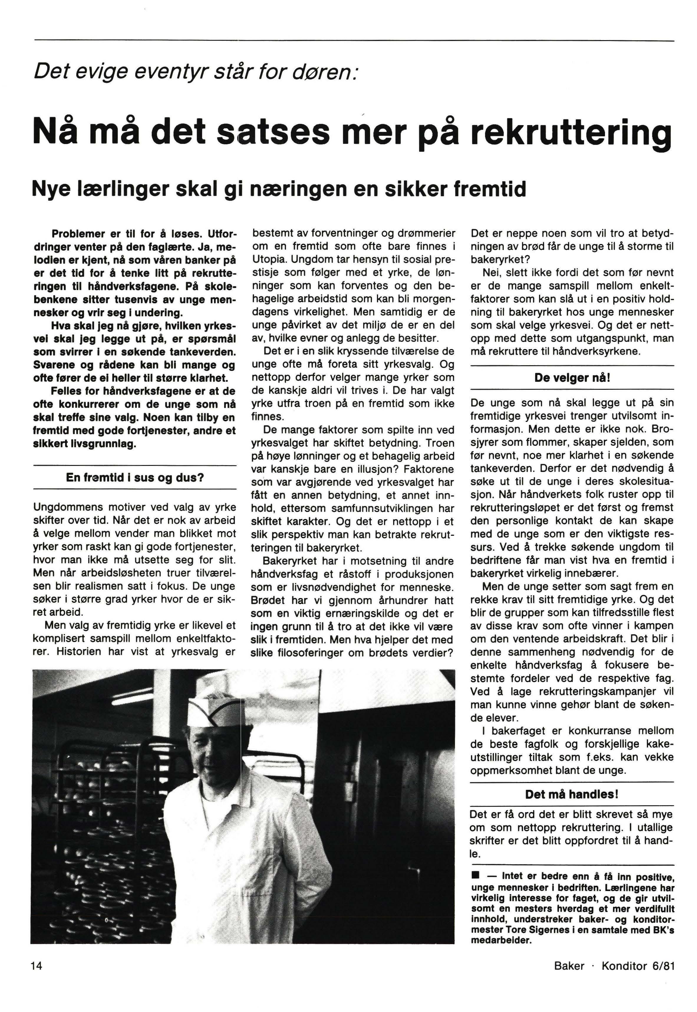 Foruten interne saker av bransjemessig karakter , arbeider man med å vinne Baker · Konditor 6/81