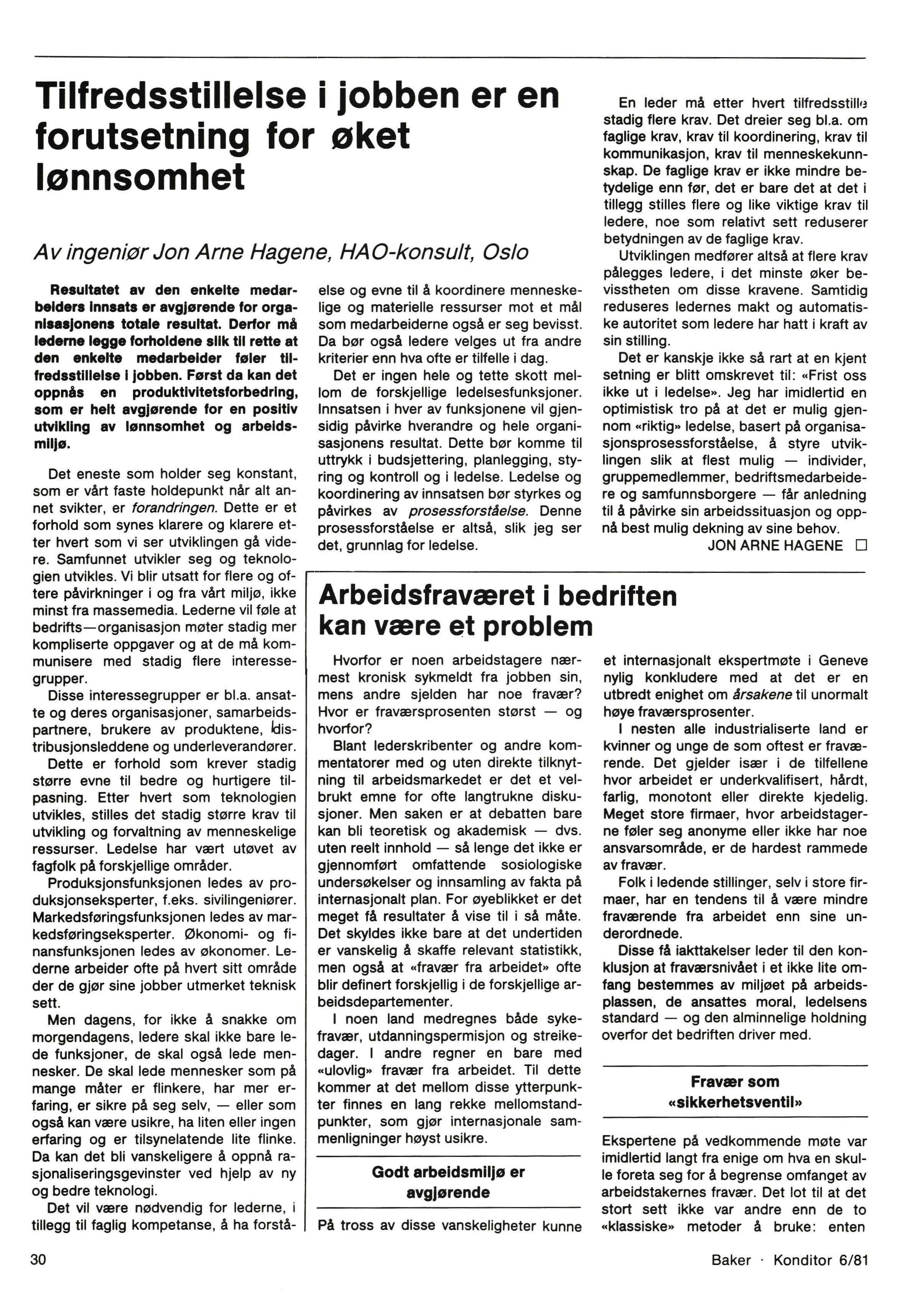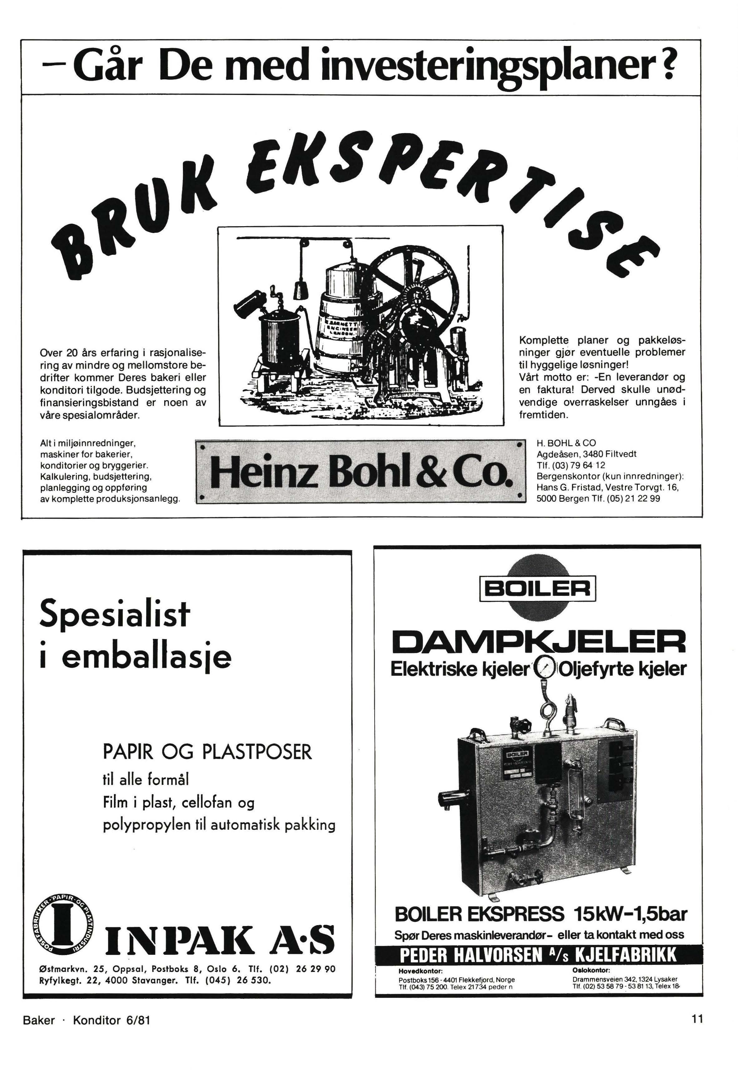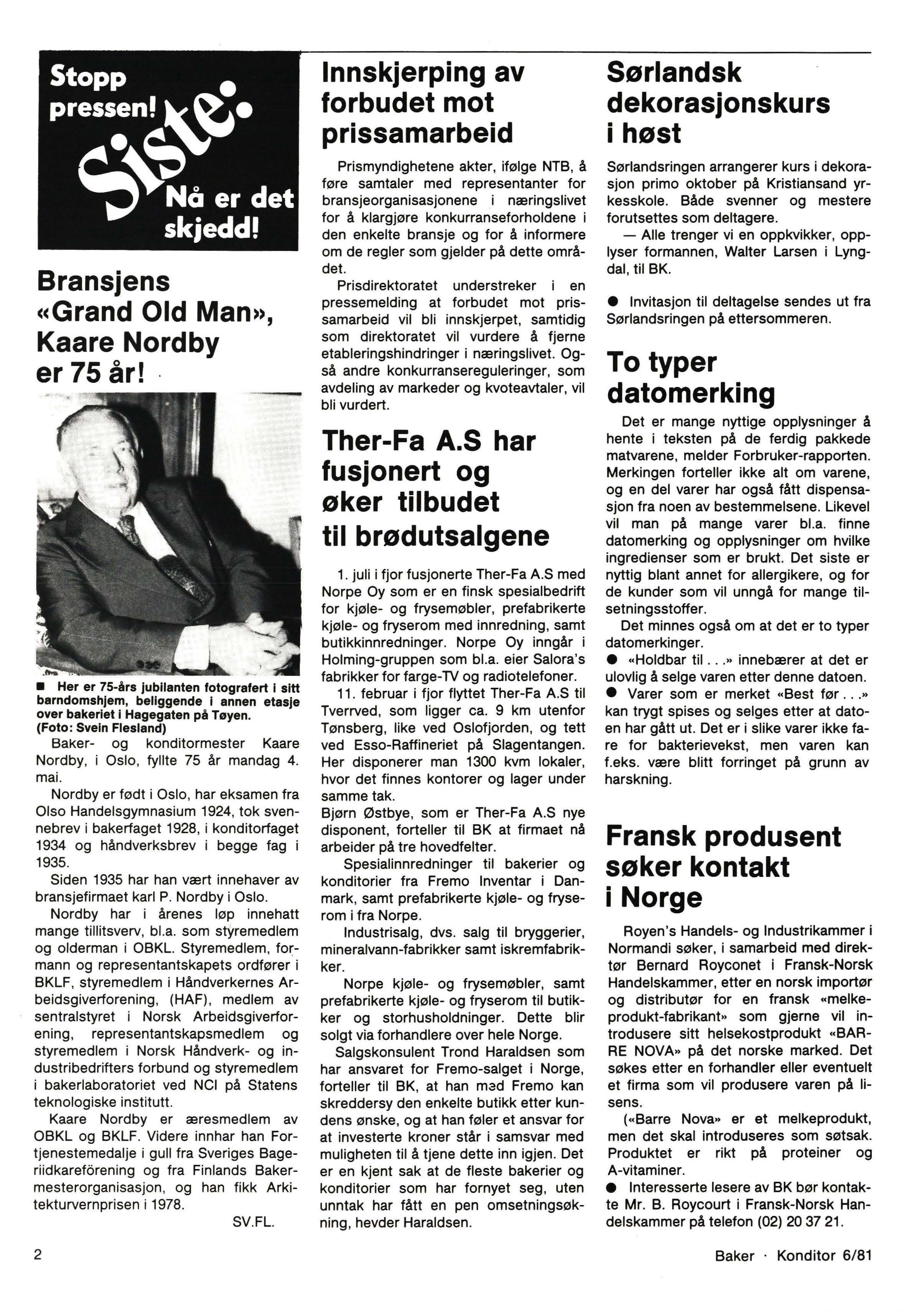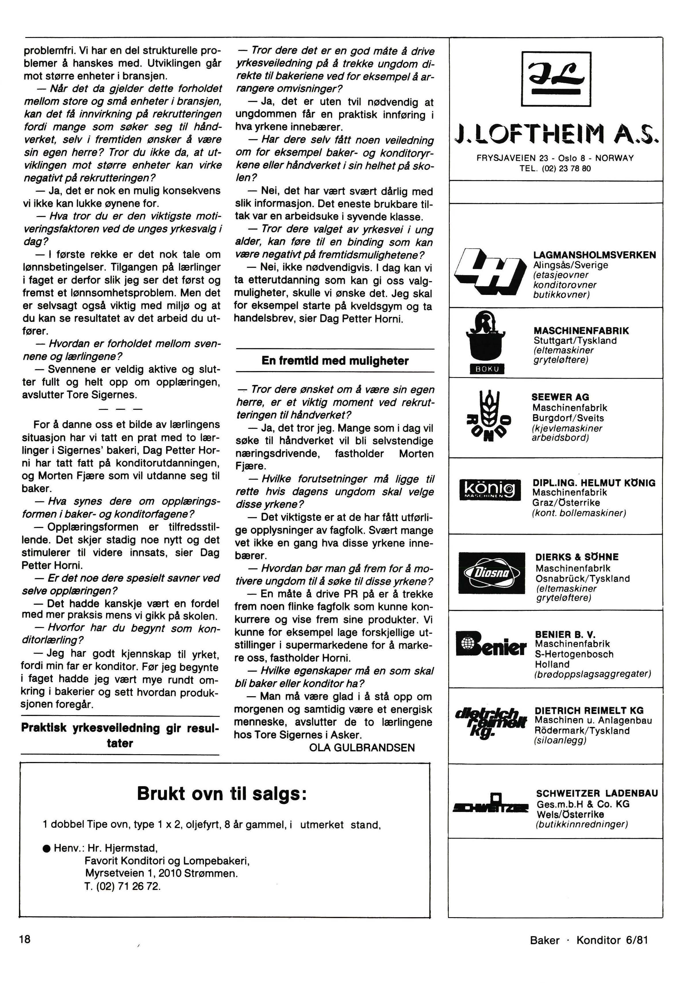 Foruten interne saker av bransjemessig karakter , arbeider man med å vinne Baker · Konditor 6/81