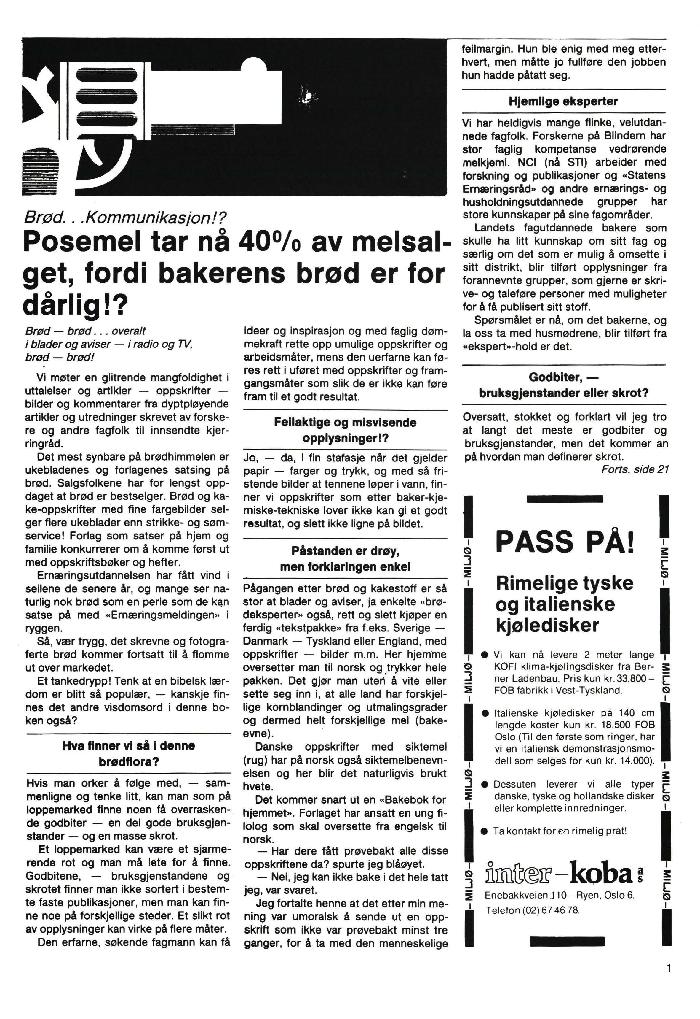 Pågangen etter brød og kakestoff er så stor at blader og aviser, ja enkelte «brødeksperter» også, rett og slett kjøper en ferdig «tekstpakke» fra f.eks SverigeDanmark - Tyskland eller England, med oppskrifter - bilder m.m Her hjemme oversetter man til norsk og trykker hele pakken Det gjør man uten' å vite eller sette seg inn i, at alle land har forskjellige kornblandinger og utmalingsgrader og dermed helt forskjellige mel (bakeevne)