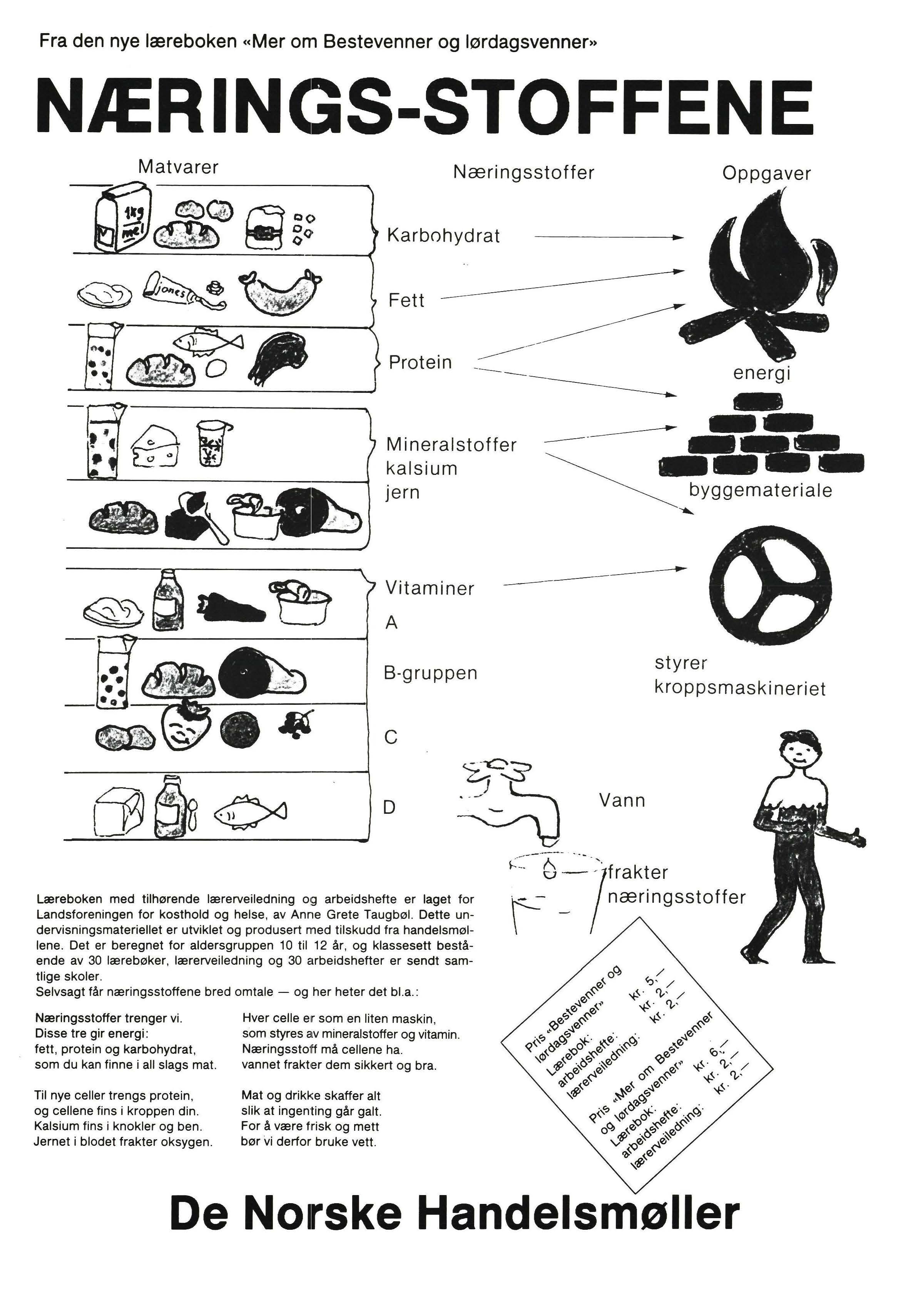 Læreboken med tilhørende lærerveiledning o,g arbeidshefte er laget for Landsforeningen for kosthold og helse, av Anne Grete Taugbøl. Dette undervisningsmateriellet er utviklet og produsert med tilskudd fra handelsmøllene Det er beregnet for aldersgruppen 10 til 12 år, og klassesett bestående av 30 lærebøker , lærerveiledning og 30 arbeidshefter er sendt samtlige skoler