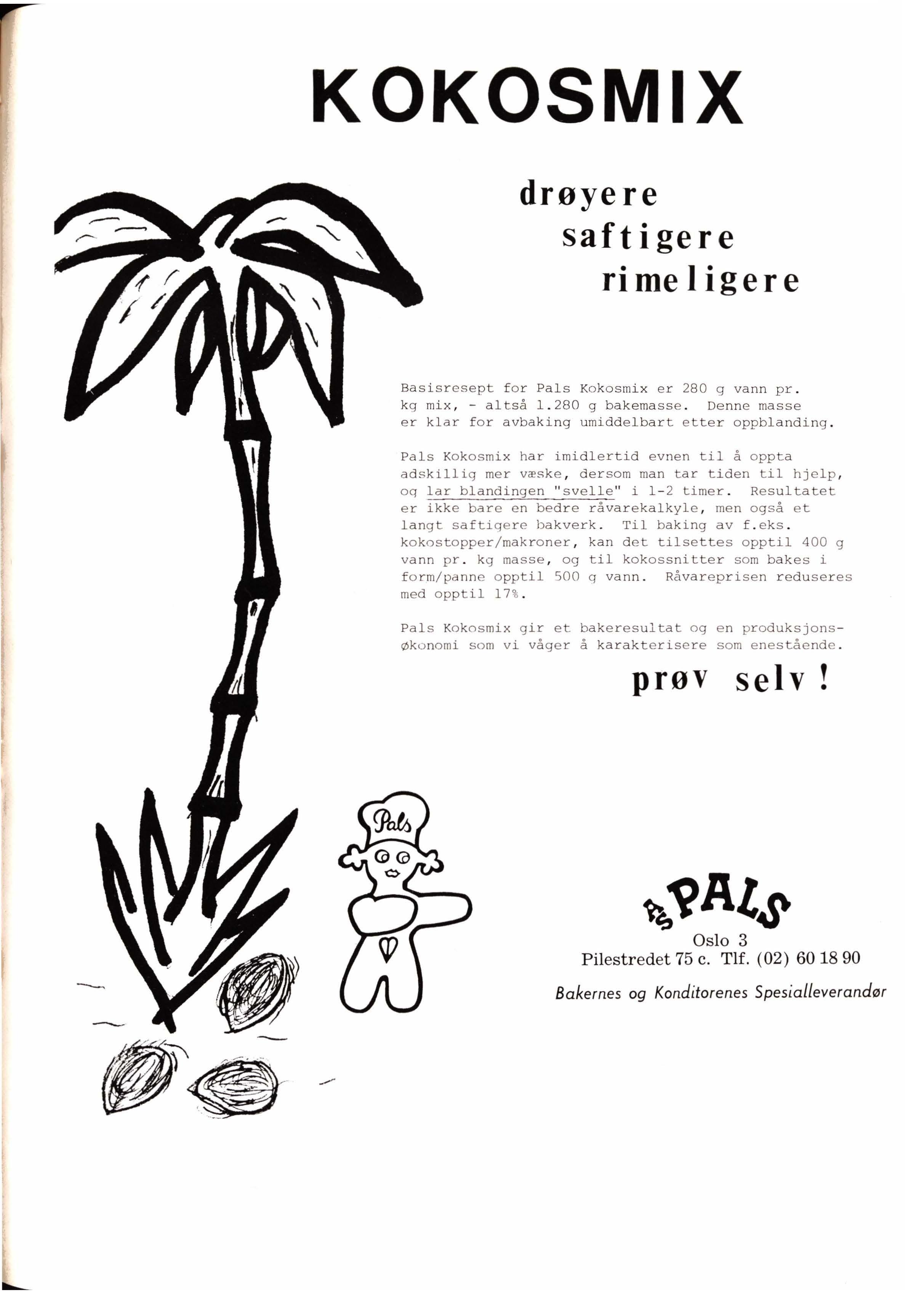 s makberiker godt wiener b akverk. Noen foretrekker det ene , noen foretrekker det andre , og noen igjen l iker a lt sa mm e n,på en gang , fortsetter B ergfjor d Dette behov til fr edsst ill er vi n å med Pals lnstant Mesterfyll. Dette produkt har e n t i lnærmet ubegrenset lagringst i d , og krever ikke ko n disjonerte lagerforhold , og man bestemmer selv strykekonsistens og bruksøkonomi Mesterfyll er mandel- , krem- og eplefyll «alt- i -ett , og er et godt altern a tiv som remons- og p a ifyll Det er så velsmaken d e at det oppfyller kravene til det fi n es t e festbakverk. 0