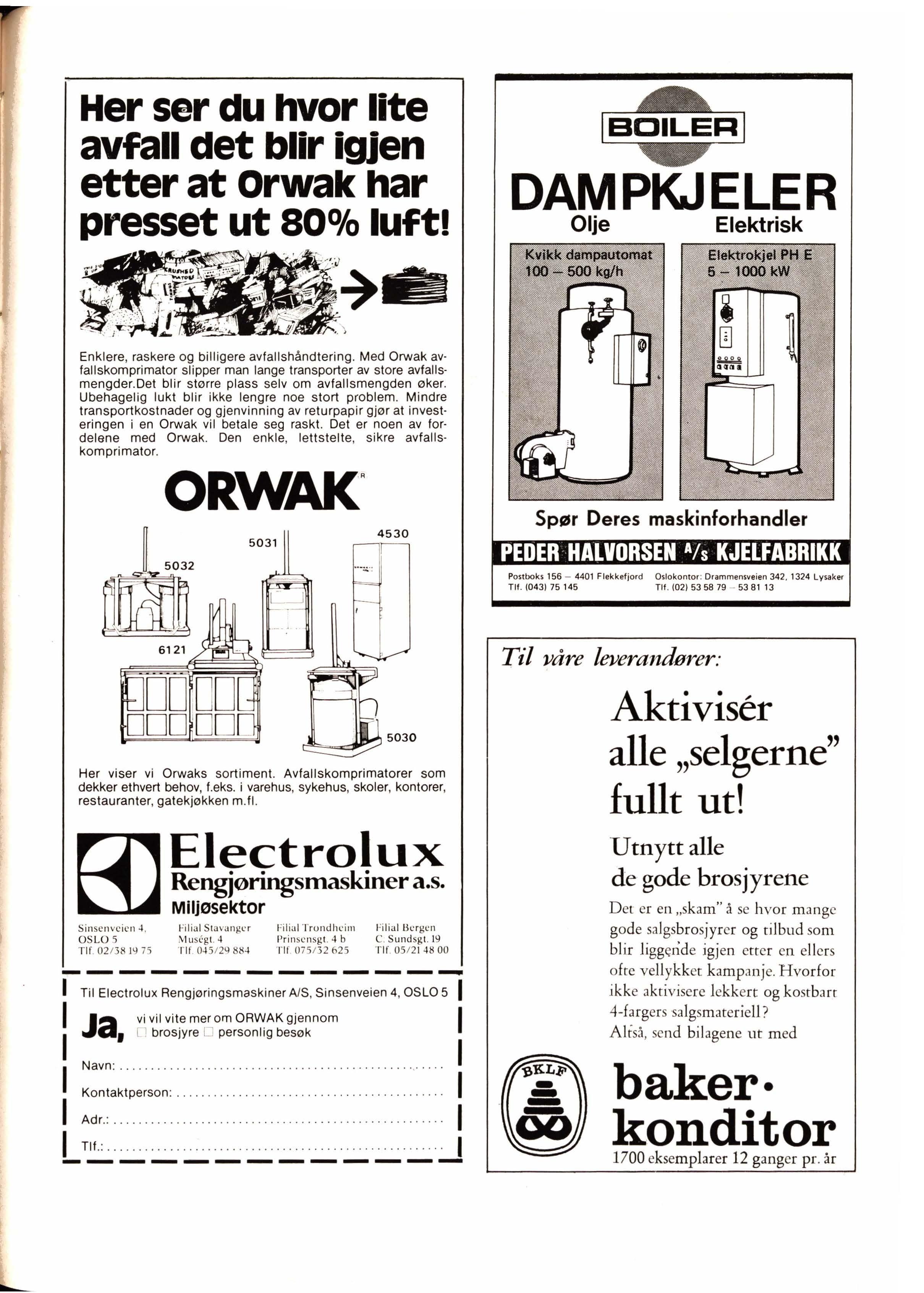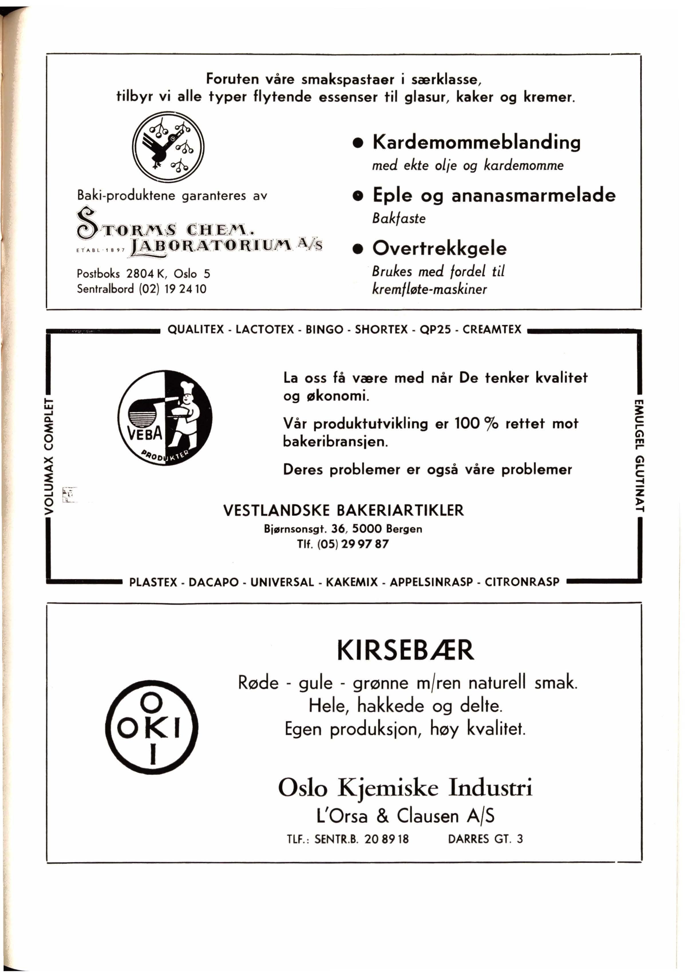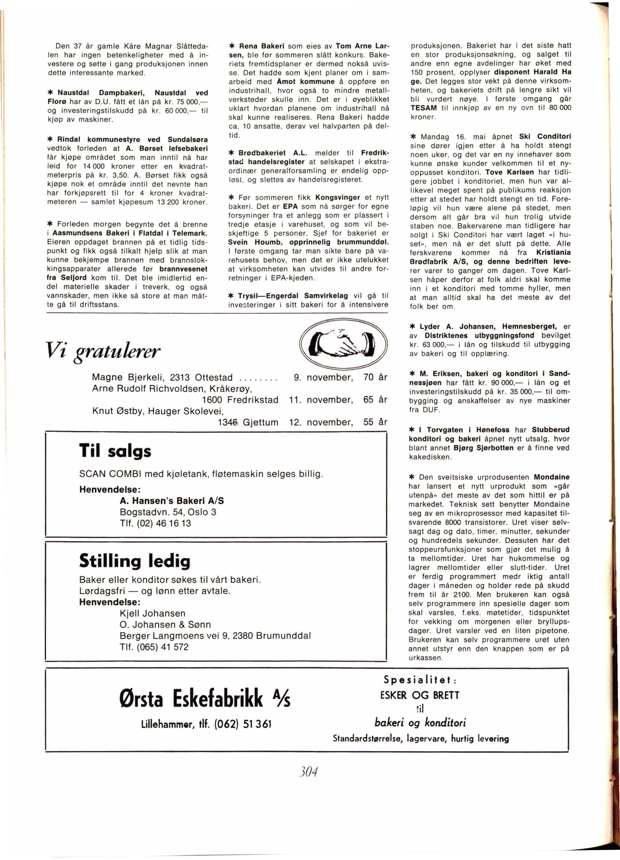 Vi benytter også anledningen t i l å gratulere bakermester Øi stein Bakken, J A Krabseth Konditori i Fredrikstad , baker- og kond i tormester Jan Johansen , C H Pedersen Eftf i Drammen og d i sponent Odd Finsrud , Liesenteret A/S i Drammen. Alle disse har i den senere t i d fått installert nye miljøriktige innredninger