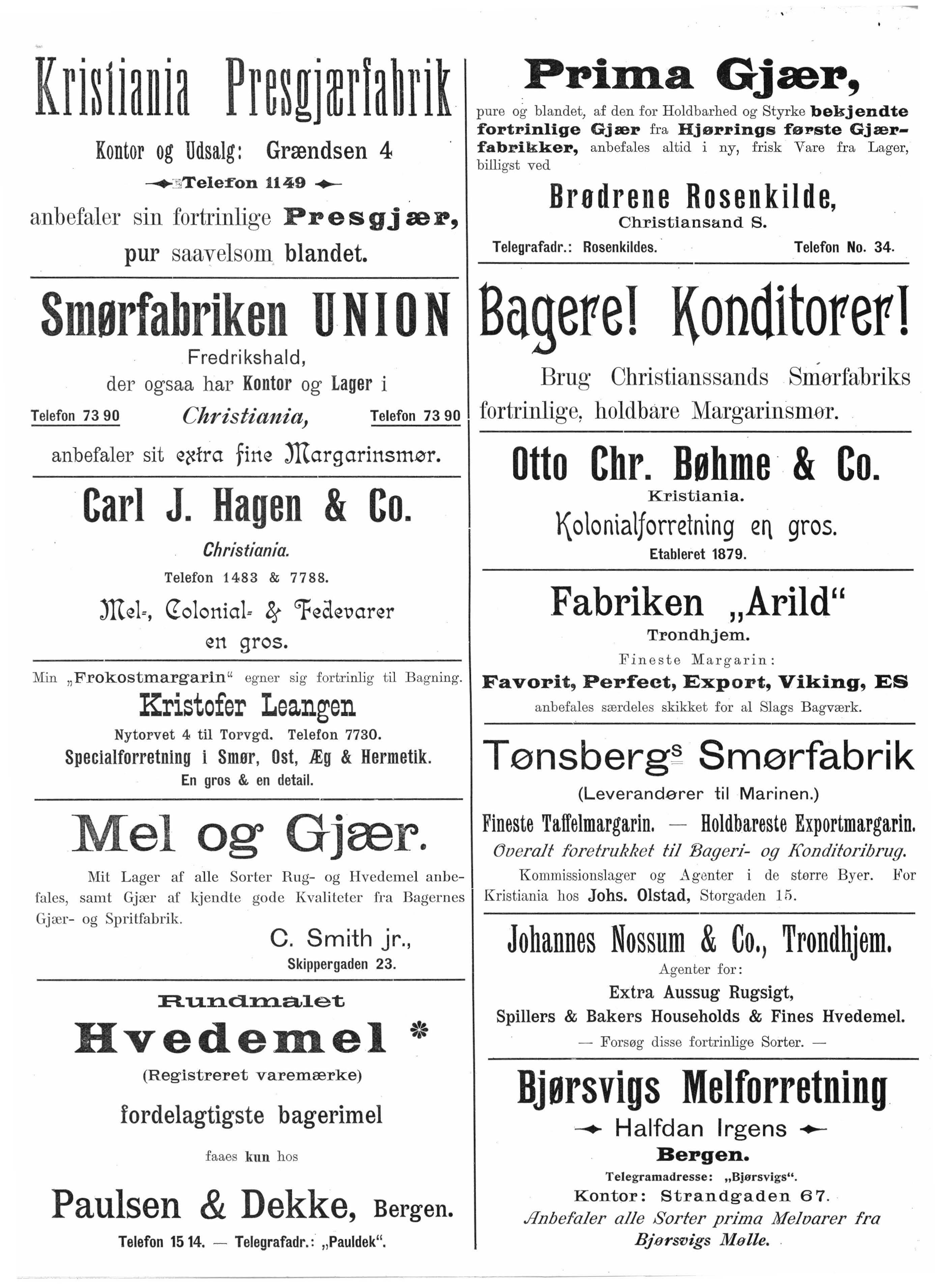 Telefon 73 90 Christiania, Telefon 73 90 fortrinlig ei holdbare Margarinsmor.
