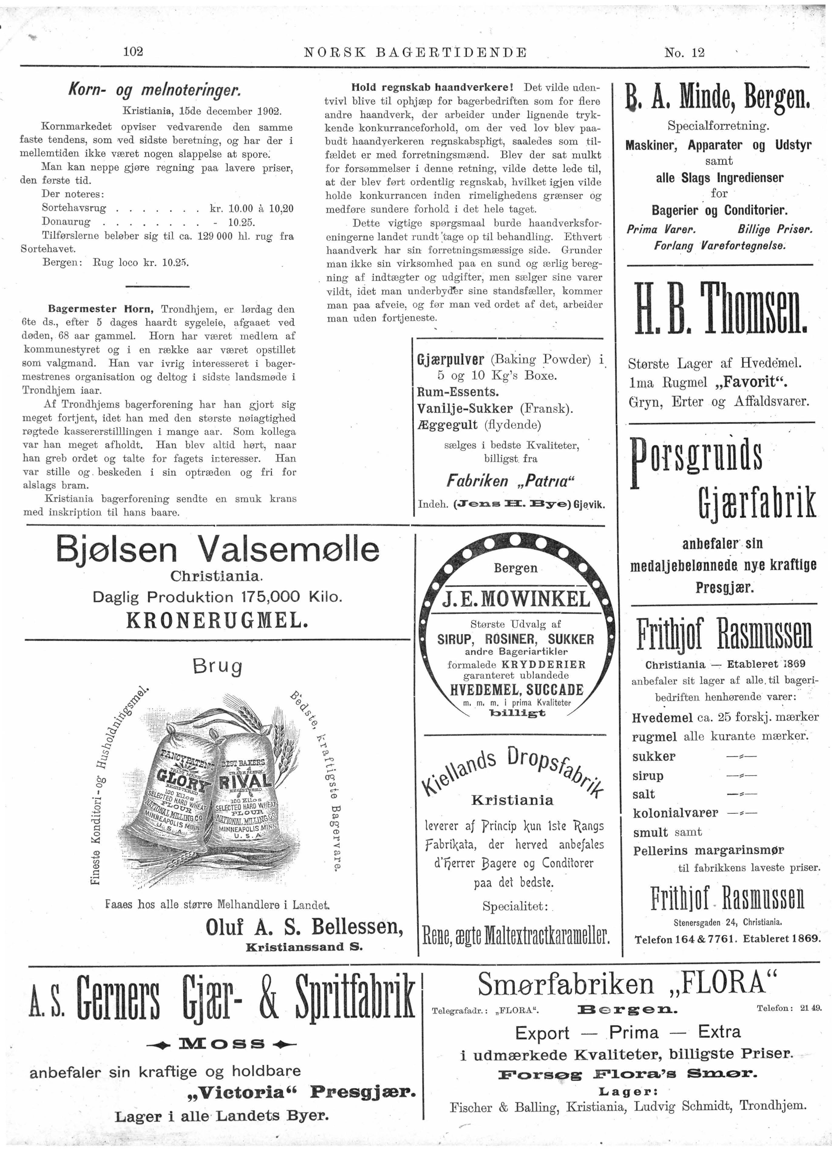 Christi ania -,- Etableret 1869 an b efal er s it lager af alle. til b ageribedriften henhørende varer: Hve.demel ca 25 forskj. mærker rugmel alle kurante mærker sukker ,,_ sirup _,,_ salt ,,_ kolonialvarer -"smult samt Pellerins margarinsmør til fabrikkens l aves t e priser.