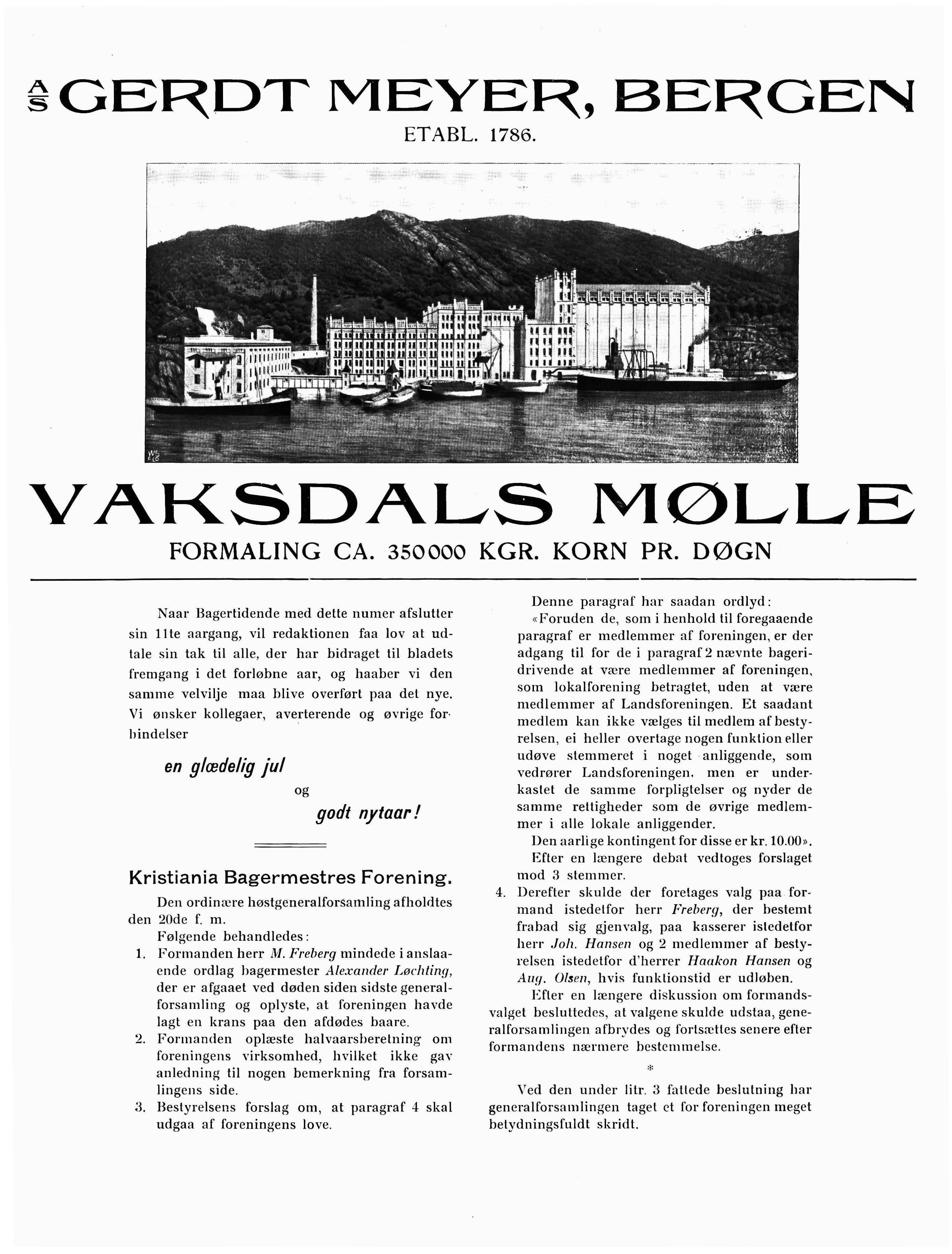 Naar Bag e rtidende med dette numer afslutter sin 1 lte aargang, vil redaktionen faa lov at udtale sin tak til alle, der har bidraget til bladets fremgang i det forløbne aar, og haaber vi den samme velvilje maa blive overført paa det nye. Vi ønsker kollegaer, averterende og øvrige forbindelser en glædelig jul og godt nytaar !