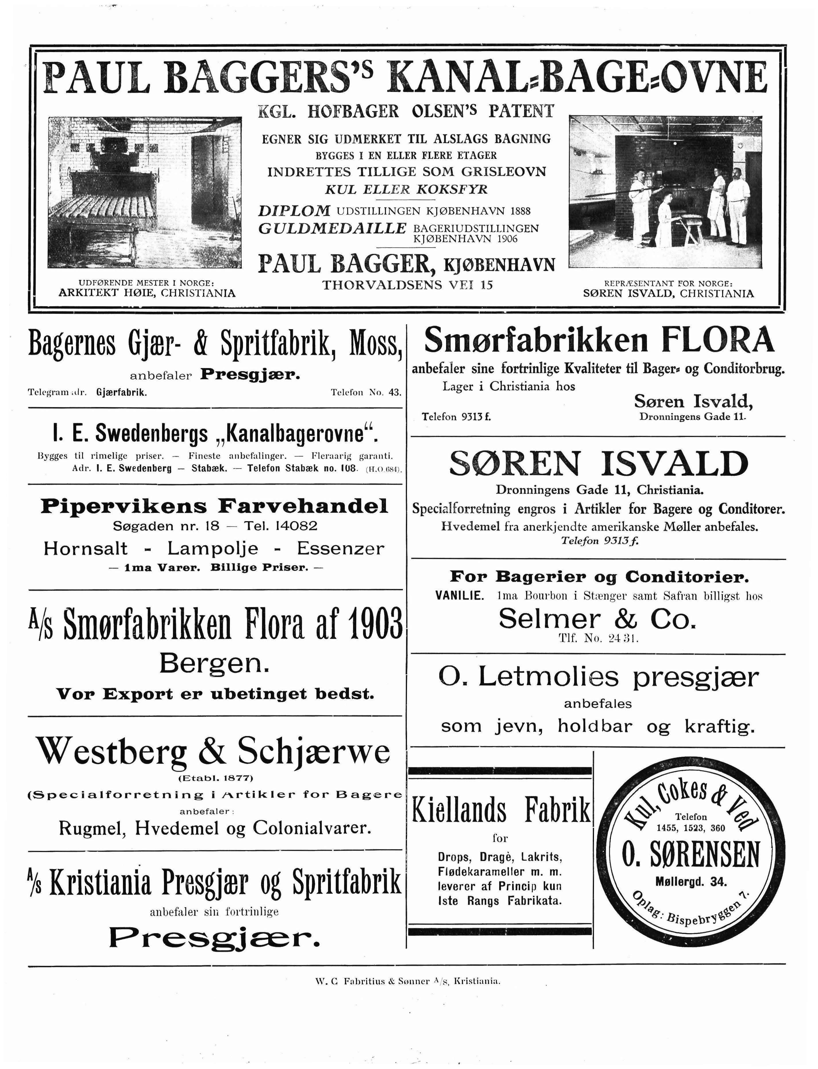 fabrikerer den kraftigste og fineste Presgjær. anbefaler sin extra fine Margarin, ,,H. F. M."