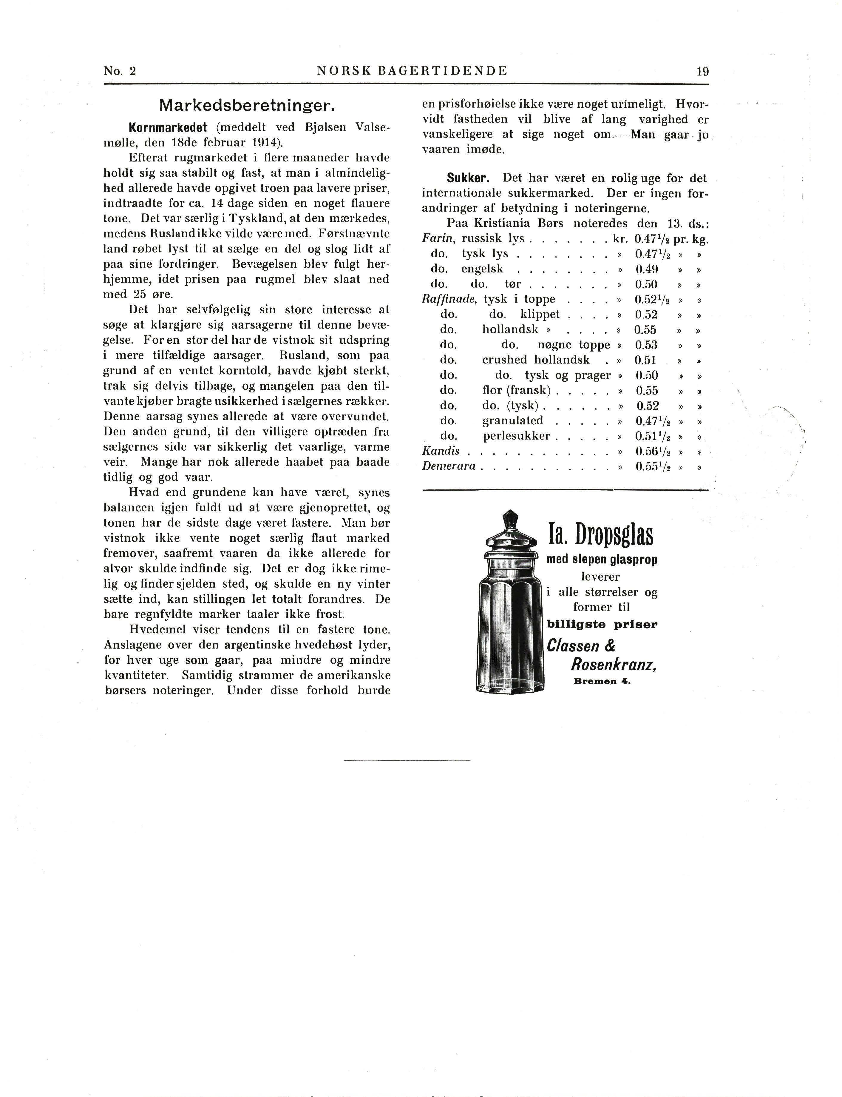 Kornmarkedet (meddelt ved Bjølsen Valsemølle, den 18de februar 1914)