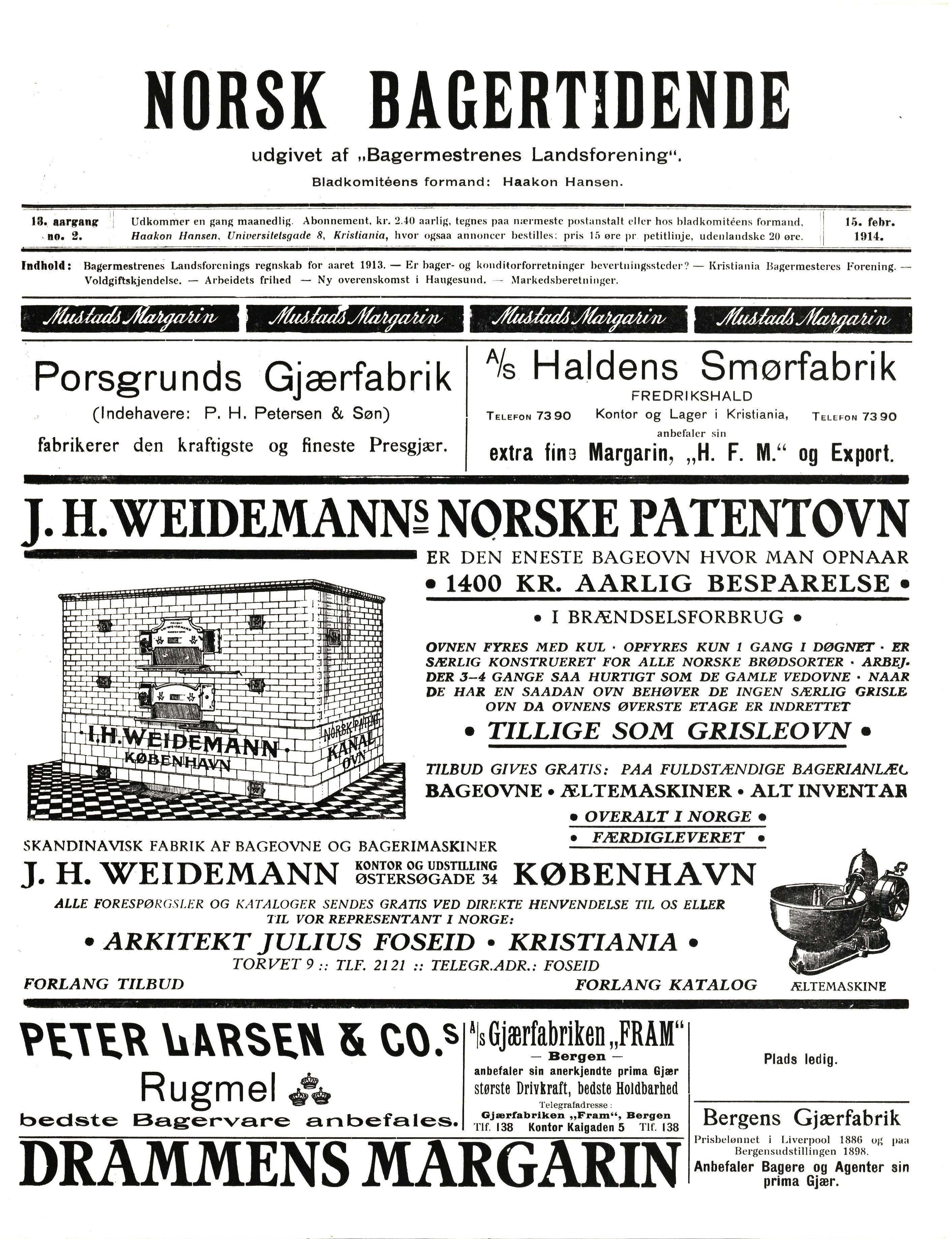fndhold: Bagermestrenes Landsforenings regnskab for aaret 1913. - Er hager- og konditorforretninger hevert11i11gsstcrlcr ? - l{ri stiania Bagermesteres Forening.Voldgiftskjendelse. - Arbeidets frihed - Ny overenskomst i Haugesund. - Markedsheretninger.