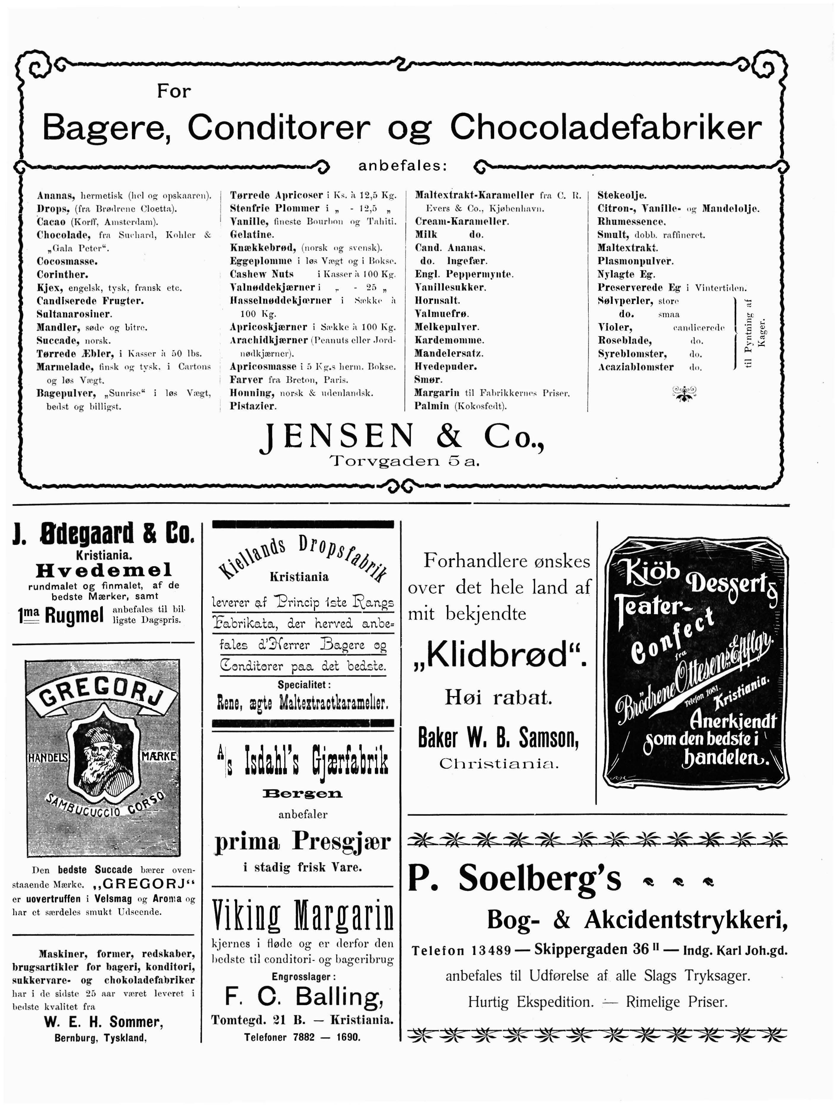 Forhandl e re ø nsk e s o ve r d e t h ele land af mit bekjendt e "Kl id brød". Høi rab a t. Baker W. 8. Samson, Chri s ti an i a. P. Soelberg's Bog- & Akcidentstrykkeri,