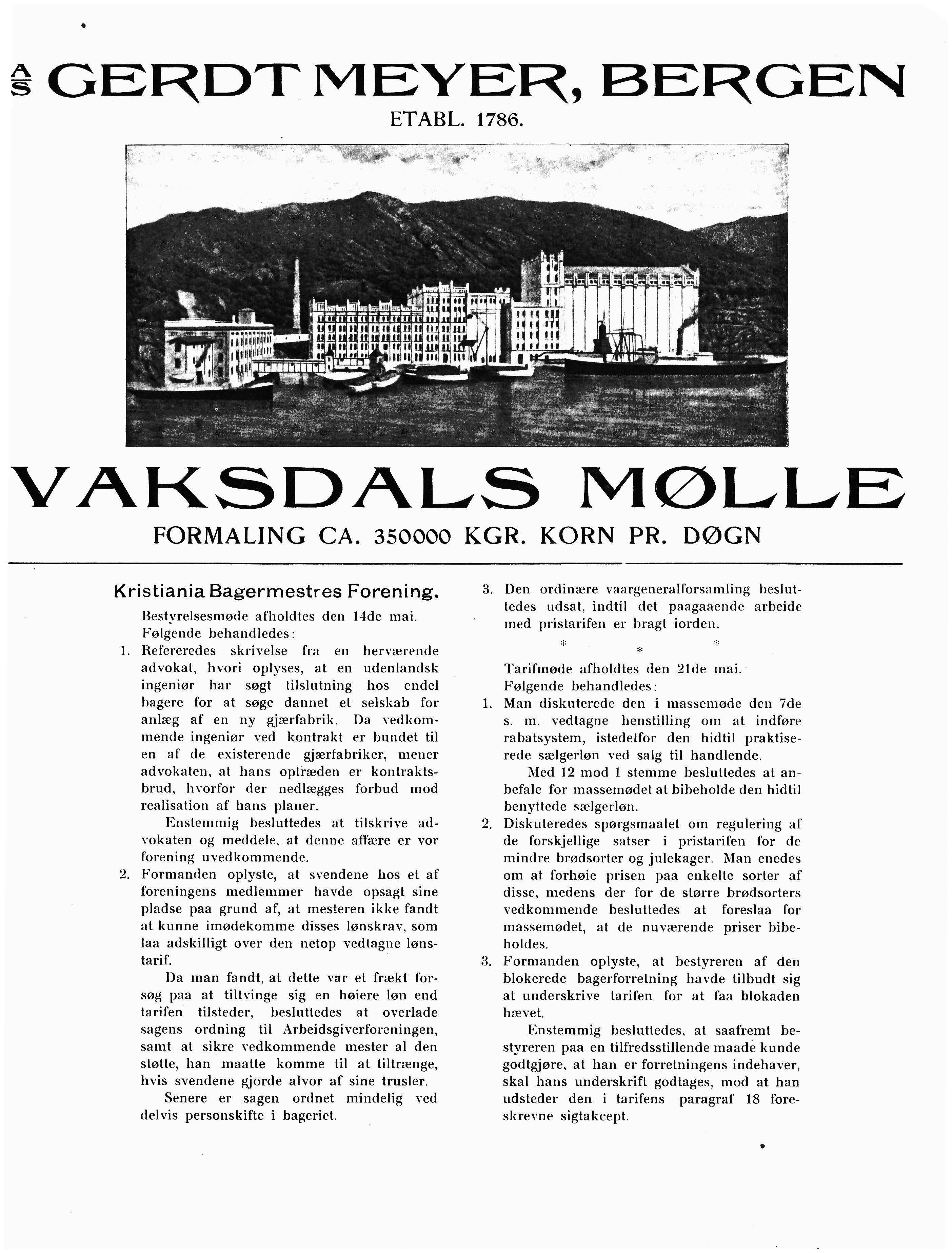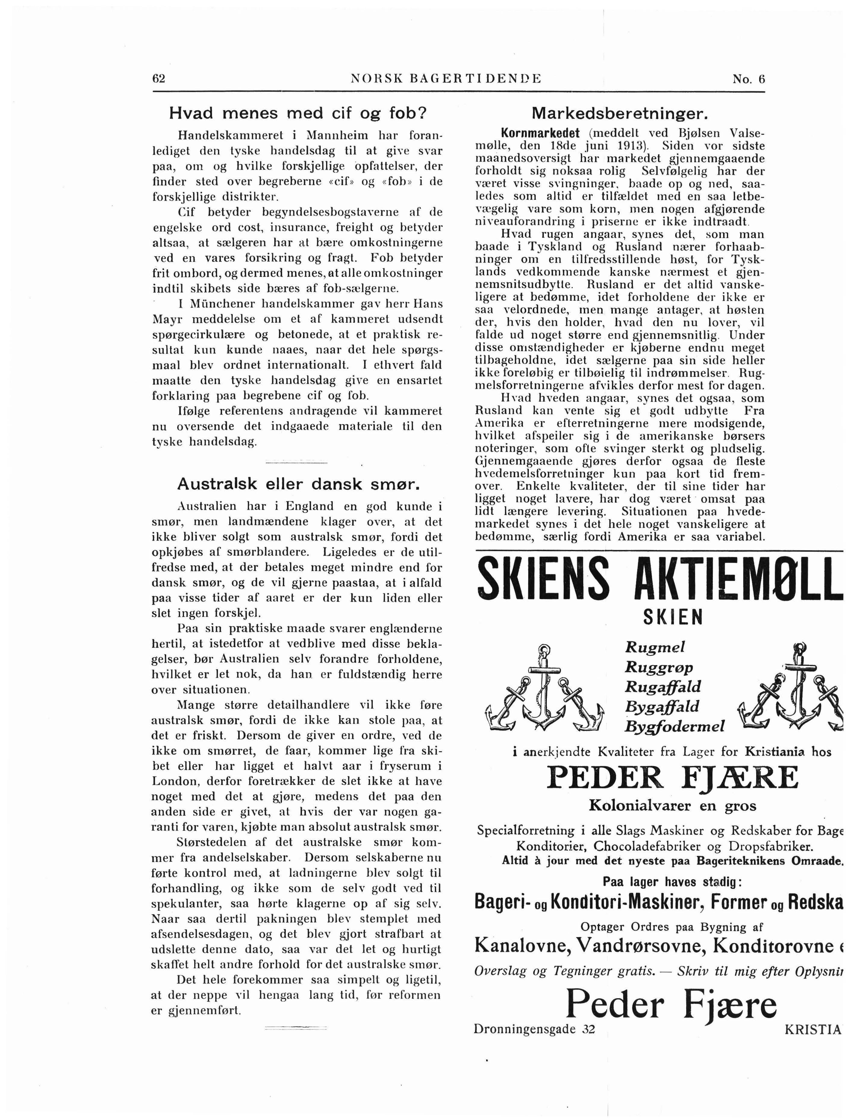 Indhold: Kristiania Bagermestres For ening - Til Tarifknmitecn i l{ri stiania. - Til vore lokalforeninger. - Hagermester P. Paulsen - Arbeidere som c hefer. Kongsberg aktiehageri tinder den nye bagertarif for stiv. Bagcriet blokeret. - Arbeiclsanvisningskontor for hagers,·endc. - Bagerstreik i Miinchen.Hvacl menes med cif og fob 9 - Australsk eller dansk smør. - Mat kedsber e tninger