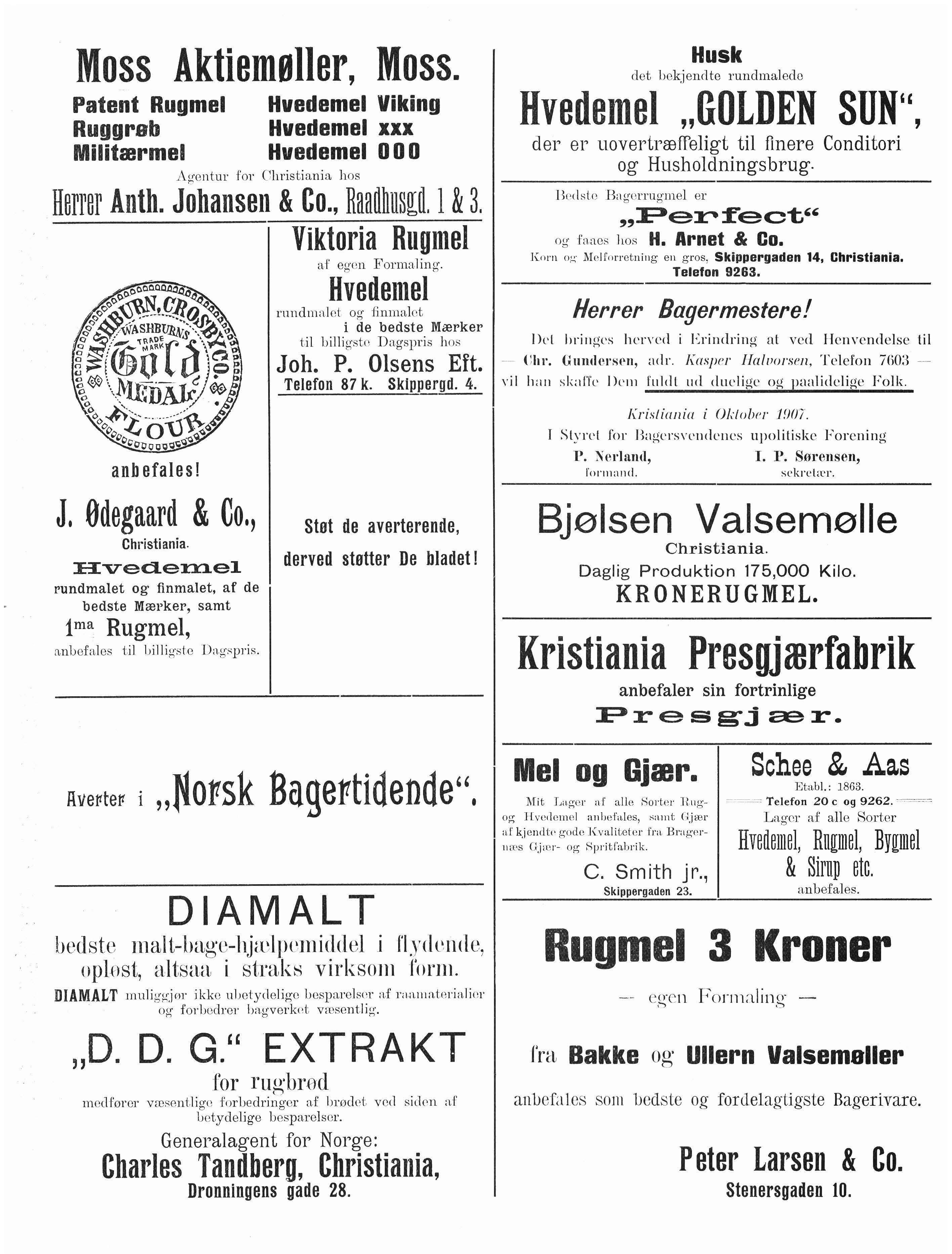 hos firmaer , der averterer i "Norsk Bagertidende," averter selv i bladet!