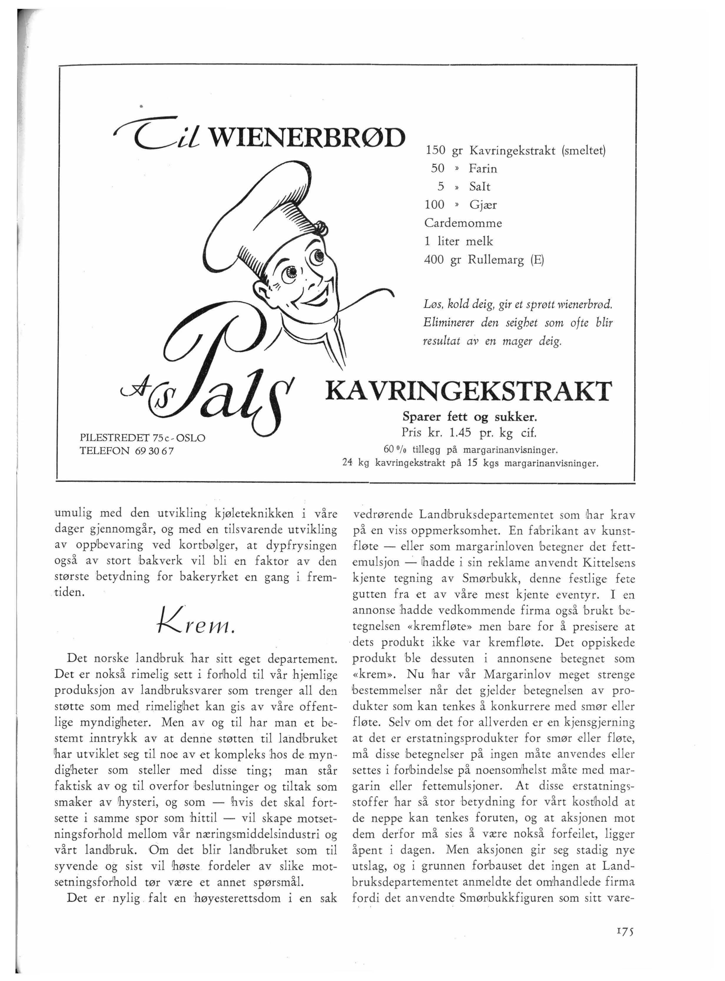 INNHOLD: SUBSIDIENE PA SUKKJER OG FETT - REGULBRINGEN AV SUKKER OG FETT TIL BAKERIENE - KJØLETEKJWKlK I BAKERYRI~ET - KREM - VI PRE:SENTERBR - DE NORD-NOR:SKE BAKERMESTRE GAR INN I BAKERMESTRENES LANDSFORENINGPERSONALIA - GIPFEuENS HISTORIE - BAKER.ASTMA - M. M.