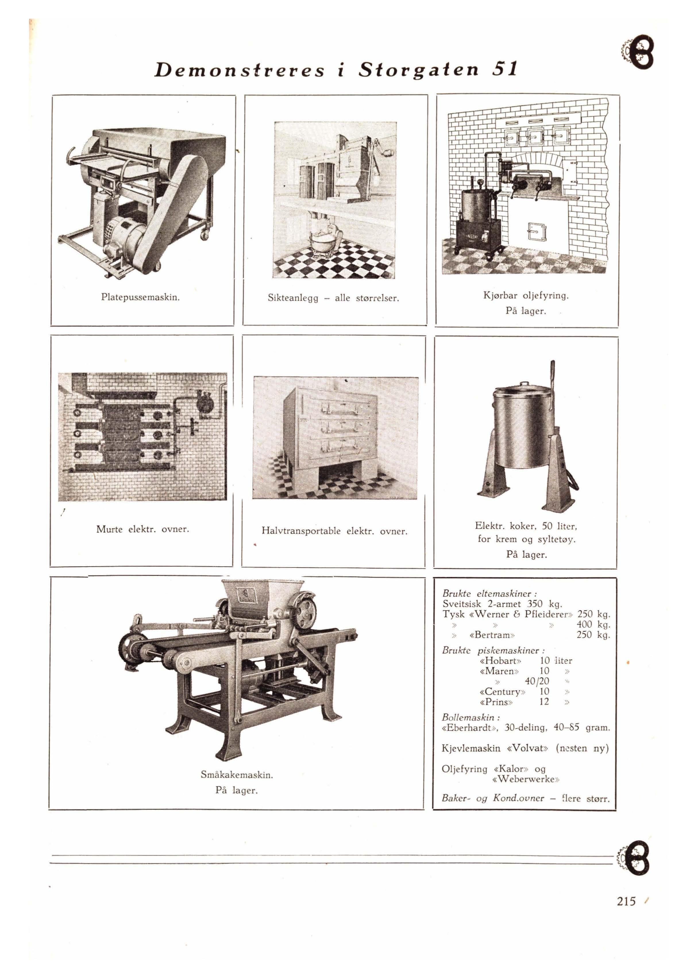 Alle slags Bakeri~ og Konditorimaskiner fra de ledende fabrikker.