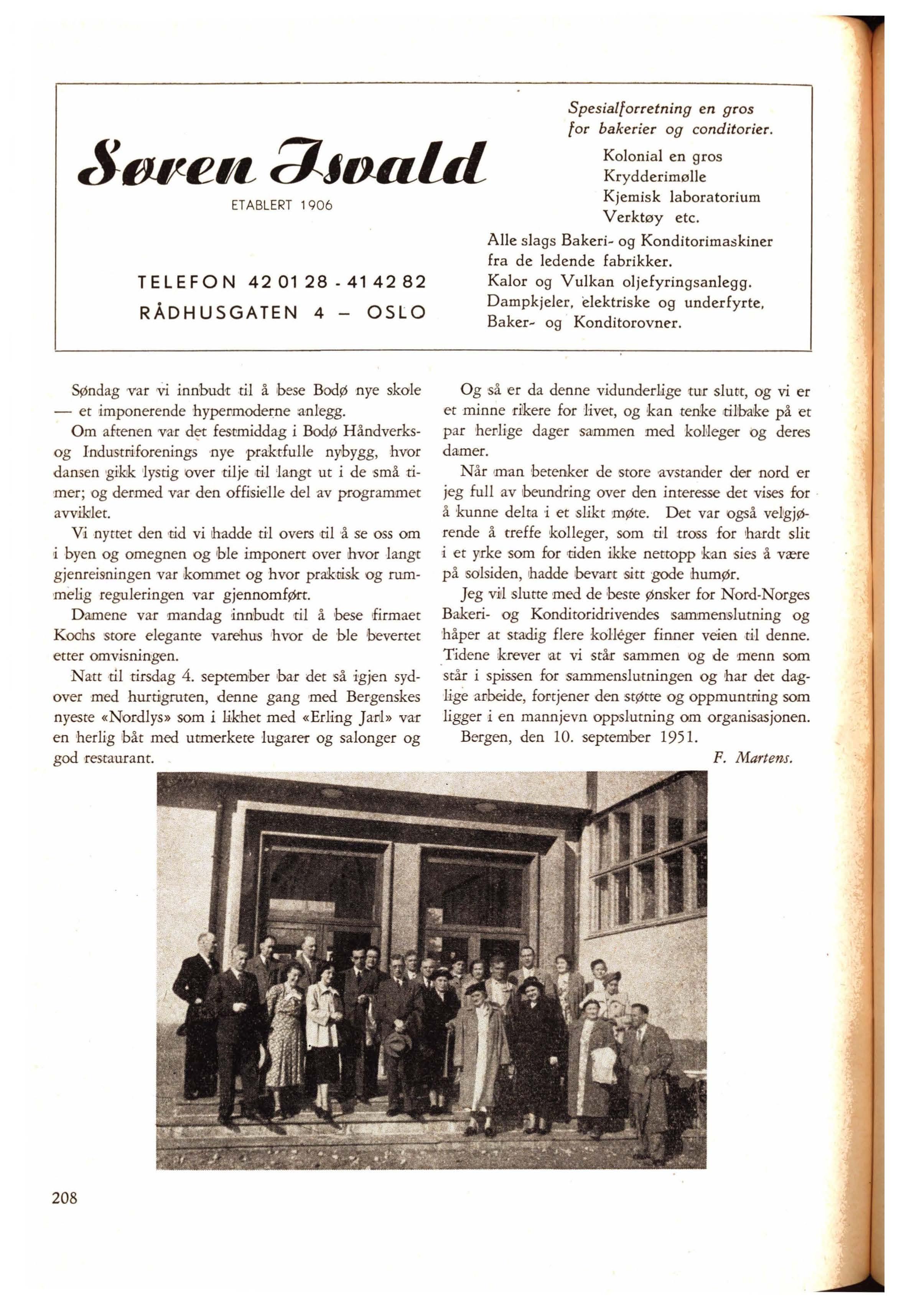 Nord- orges Ba-keri - og Kondiroridrivend es Sammenslutning hadde være så elskverdig å innby min hustru og meg til årsmøtet i B:xlø 1. og 2. september. Vi var meget glad over å motta -innbydelsen og over at det ble mulig for oss å reise.