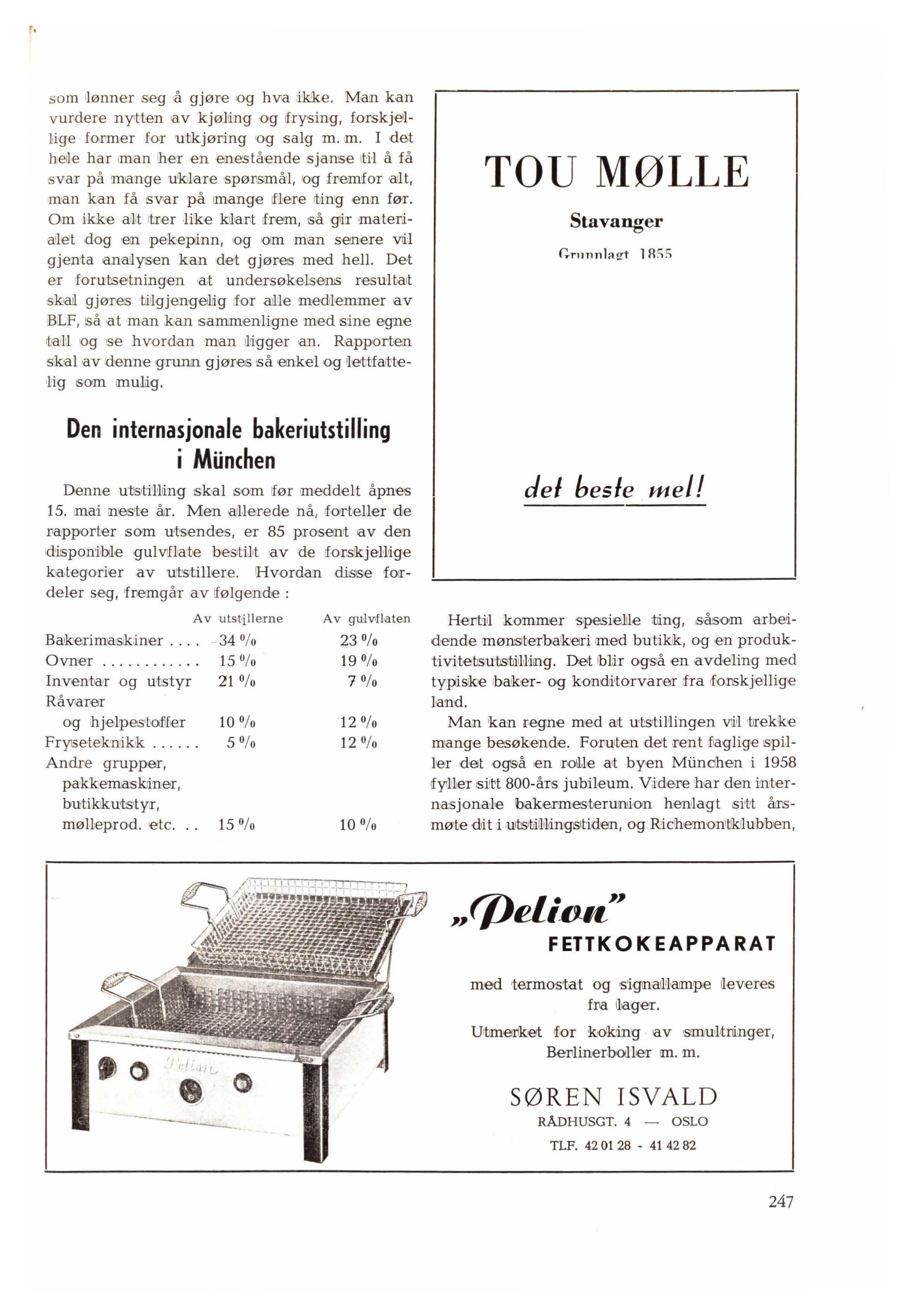 Det er og1så andr,e Nng som ,er t ,a,tt o,pp i forbindelse med produktivi·t,etss1tudi1ene. En av dem er det konitro'1lorgan for ibakerrima:skiner, •som vii for har omtalt, og som nå er klart til ,å ta imot oppdrng. Maskti.nproduseniter og !forhandlere har vært meg,et villige ti,l å 1'ever,e oppgav,er over t,ekniske da'ta, og det hele materi,ale er ka11to:tekfort og byr et int•eressanit studiemarterial1e !for ,folk som tenker på å kjøpe masikiner. Vi kan bare anbe<Ia1le ,haikere som går med slike planer å s,ende inn for,espørsler, ,eller å lkomme innom Bakerliaboratoriet når de ,er i Oslo, og se på salk.1ene. Når de nyie loka1'er ,er if.erdig,e - og det ,er bare ,et spørsmål om uker nå - vil det også bli mulig å arrang,ere demonsitrasjon,er eHer prøvning av nye maisk,intyper. Ogs å ther håper vi på godt samarbeide fra lever,andørienes side, og vi tror ikontrollmganet vil få vokisende betydning ettersom raisjonal1is1erings1ti1l'takene skal s ,ettes ut i •liivet.