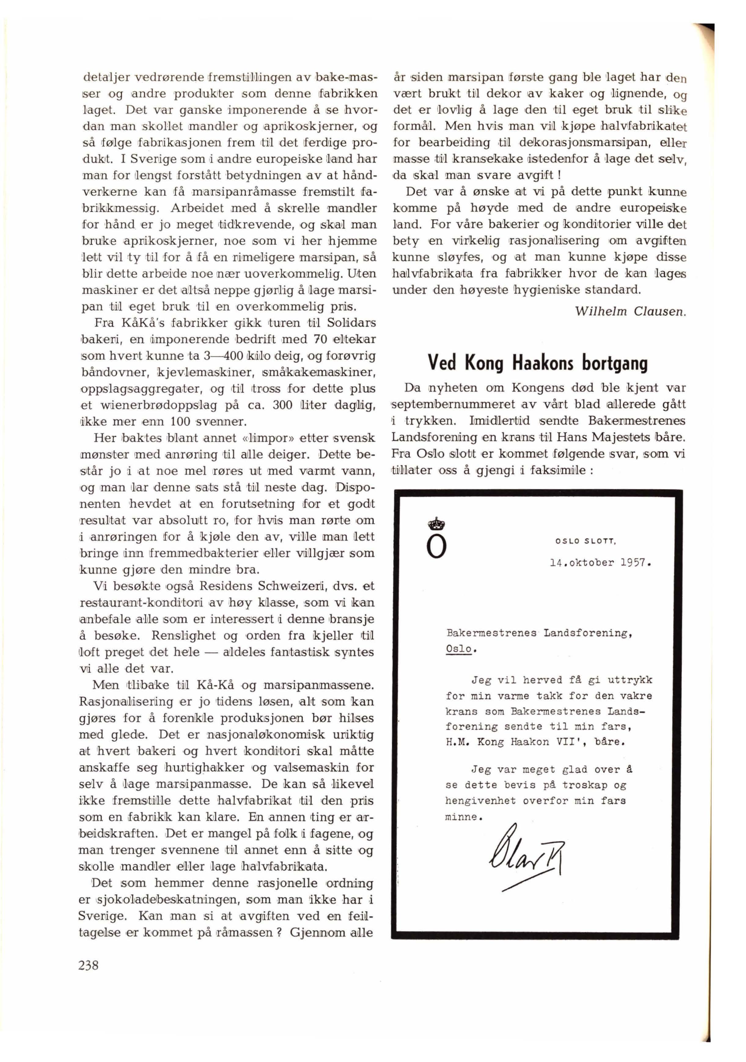 Med 1en :slik aTI1Srkialffe.lse k ,an man si art: den tekniLsk1 e revoliusjion innen ba k er1fa g,eit er ifuUby,rdet. Et balæ,r,i hvor deigen a'Utomatilsk b landeis, eHes og fores ,fr.em til •e't kompilebt dele - ,o g o pps1lagsaggrieg,a•t, hvior derig,eimnene ,går viidiere på bånd gj,en.nom aut01Inatii,slk raskesilrnp og deTifaa bil gj,ennomløpsovnen og igj,en på bånd til e'kspedis j,anen, og hvor etpar tre mann ikke ihar annet å gjøre ,enn å !ha >ti'lsyn med maskinene ,o g trykke 'På mapper når diet tif,enges, det er 'ikke 111oe111 utopi l 1engier. O g de ørkonomi,sk,e forutsetni1I1ger er .ikke værr,e enn ,at anlegg av derme ,art i da,g er i dri:fit å. Skandlinavi,a, (dette kommer vi ti,Jbak•e tH i et senere nummeT ) Det ikrevies en tul'l1Srt:endig omlegging av bakemes gjengs1e :ta®egang, men på den annen sirde, ikrew~r i!kke tiden også en s1hk omstJJl;ing ? Vi an/Ser det ikke mirmelå.g at man også li. Norge, og særlig ved ny,anleg,g hv,or plane11ingren •gi1 r !frie disposisjonier, vil t ,a de muligheter som nå åpner s eg rop:p hl a'1vorl1ig vurdering.