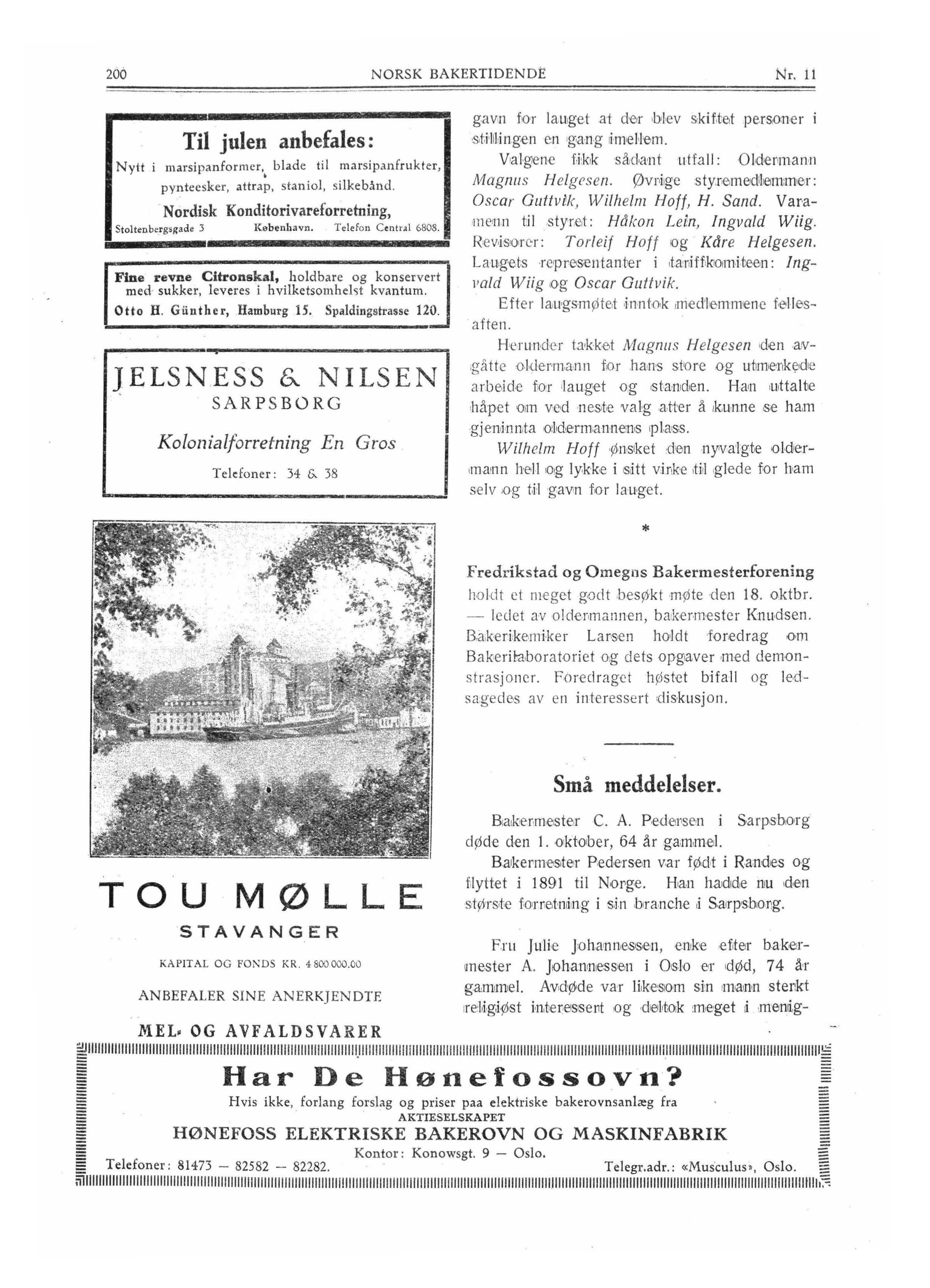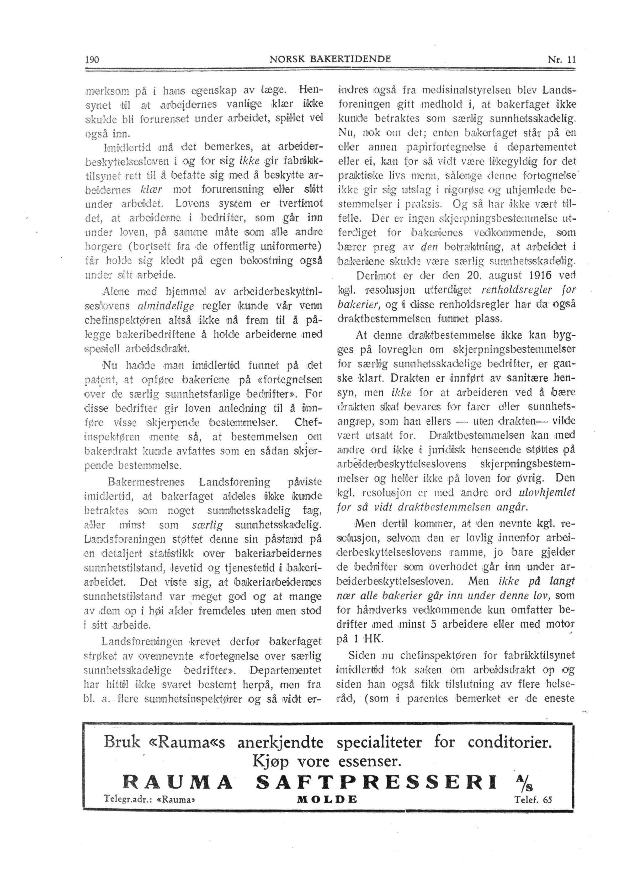 lnnholdr Bakermester Reimer s. - Justering av lodder og ~ekter. - Arbeidsdragt for bakeriarbeidere. - De~ nye direktør for Kornmonopolet. - Arbeidsforholdene innen forskjellige europeiske landes bakerier.Foreningmytt - Små meddelelser - Gullnøttmaskinen.
