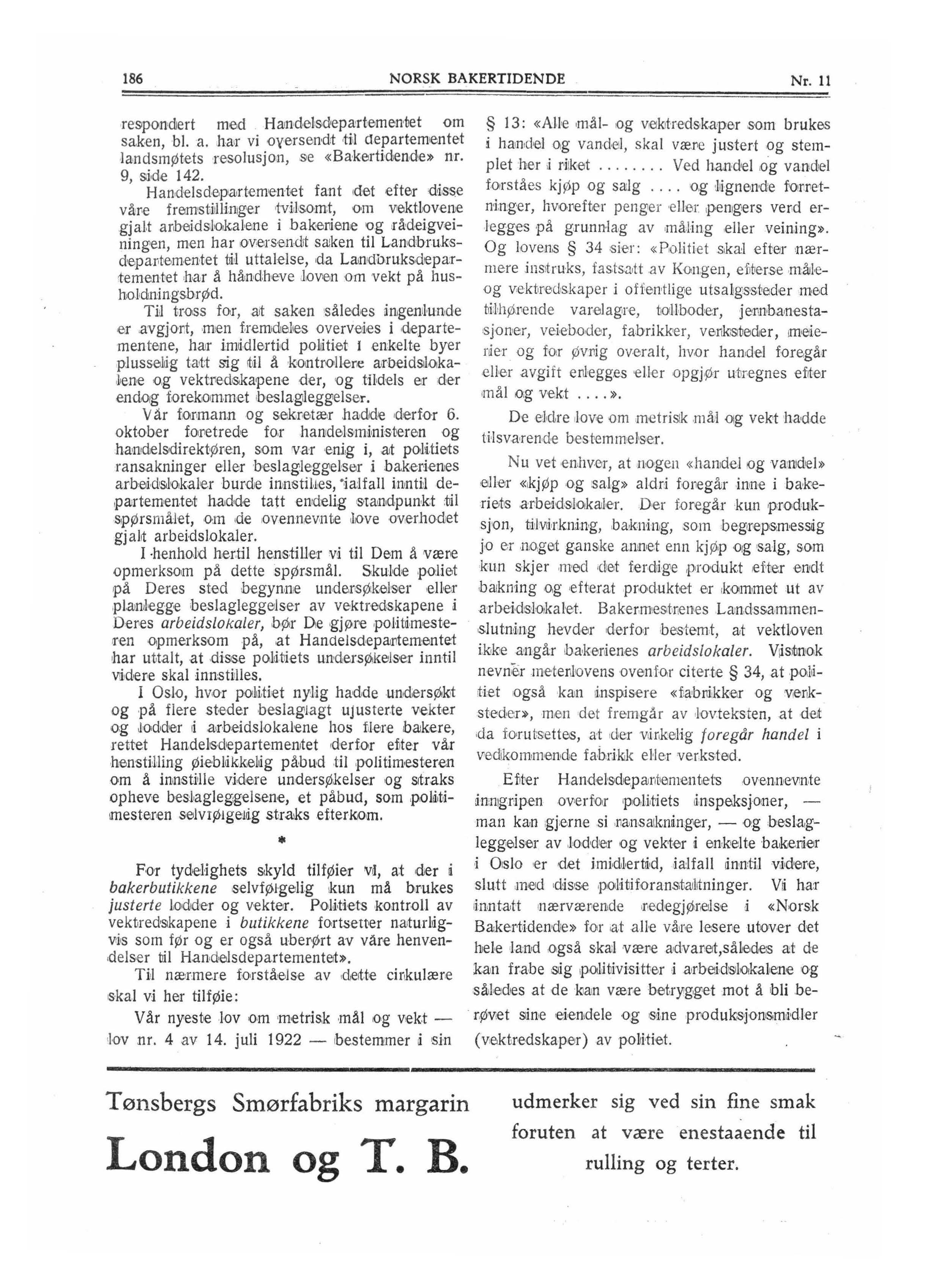 E f1ter Hande1'sdepa1rit1e me.n t,e ts ,ovennevinte ån:rngr:ipen ov•erfo1 r poiJj,tiets ii.nspeksj-one r,man ka,n igj:erne si ,11a,nsa1knån.ger, - og hesl:aiglegg,els•er av fodder og vekter å enk1elte bakieni,er ,i Oslo ,er det imi,dl,ertåd, ,ia:lfall dnn:ti,J v,ider•e, slutt med ,dfa,se ,politif.oransita1btninger. Vit ha:r 1innta,tt 1nærvær,enide ,r,edegjØ,r,els,e ,i «Norsk Baikert,idende» for ,a.t alJ.e vå,r,e leser,e utover det hieJ.e ,Jan,d også skai! væ11e a,dvariet,så1ede.s a:t de kain frabe ,slig ipolHuvi:sitter ,i airhei,ds1loikal1ene og såiledes at de k!a,n vær,e bet,ry;g,get mot å bli ber,ØViet siine ,ei,enidele ~g ,s,i,ne produksj,on,s.mddl,er (v,ektr,edskaper) av poliHfot.