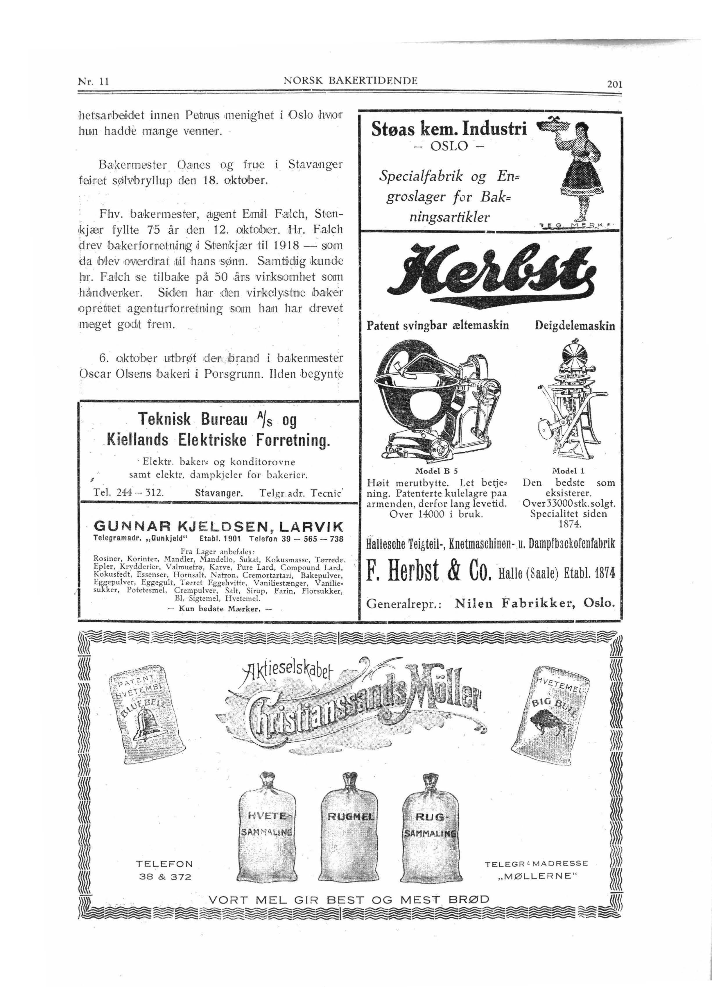 6. 01 ktober utbrøt der,. bra.nid i bak:enmeis t,e:r Oscar O lsens :bakeri j Porsg runn Hden begynte