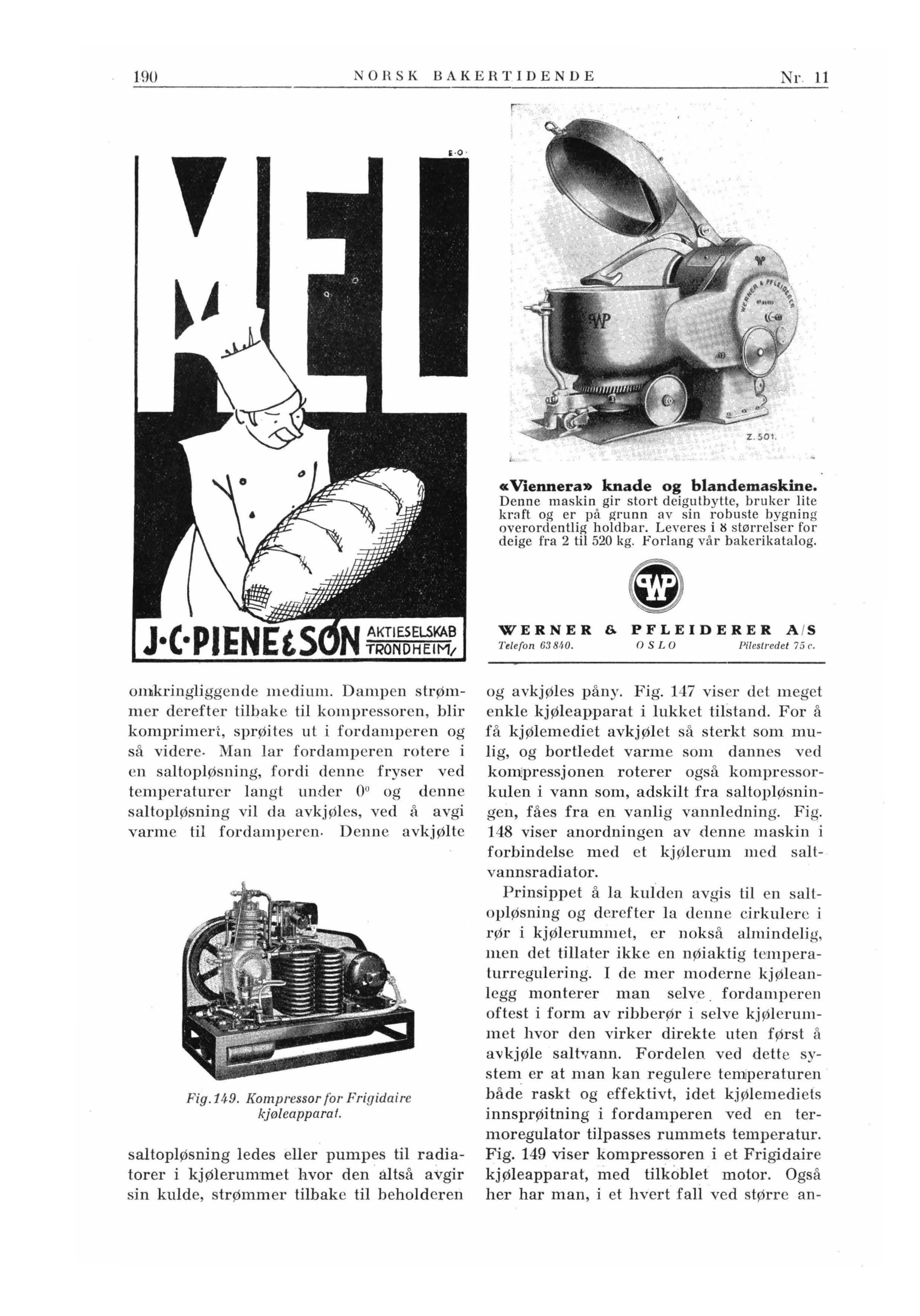 Med tillatelse fra A M. Hanehes forlag hitseltes kapitlet om kjøleanlegg fra ingeniør Larsens bok Korn, M,el og Brød.