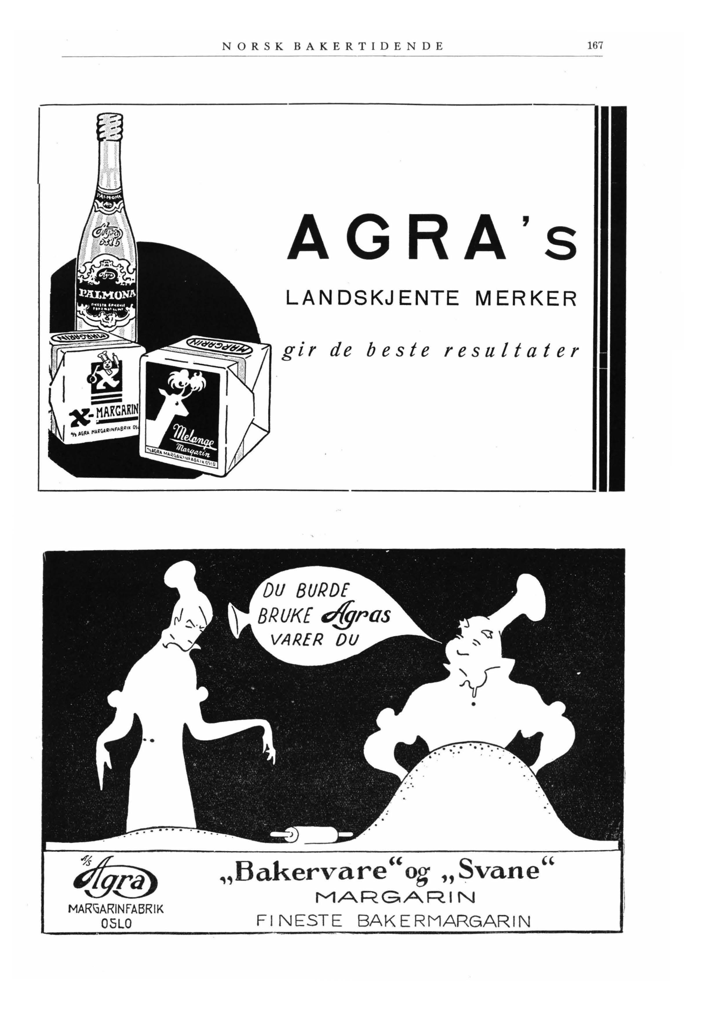 noen å r, og der er all grunn t il å fø lge d e n med int eresse England og Nor ge står hinanne n så vidt nær i br ødsp ørsmå let - begge la nd må importere vesentligste r ås toff for br ødfrem s tillingen. Og blir resultatene i de komm end e år l øfterike som de har vært i år, så er der" a ll grunn også for norske ba kere til å ta sa k en om brødpropa ga nd a op til fornyet dr øftelse.