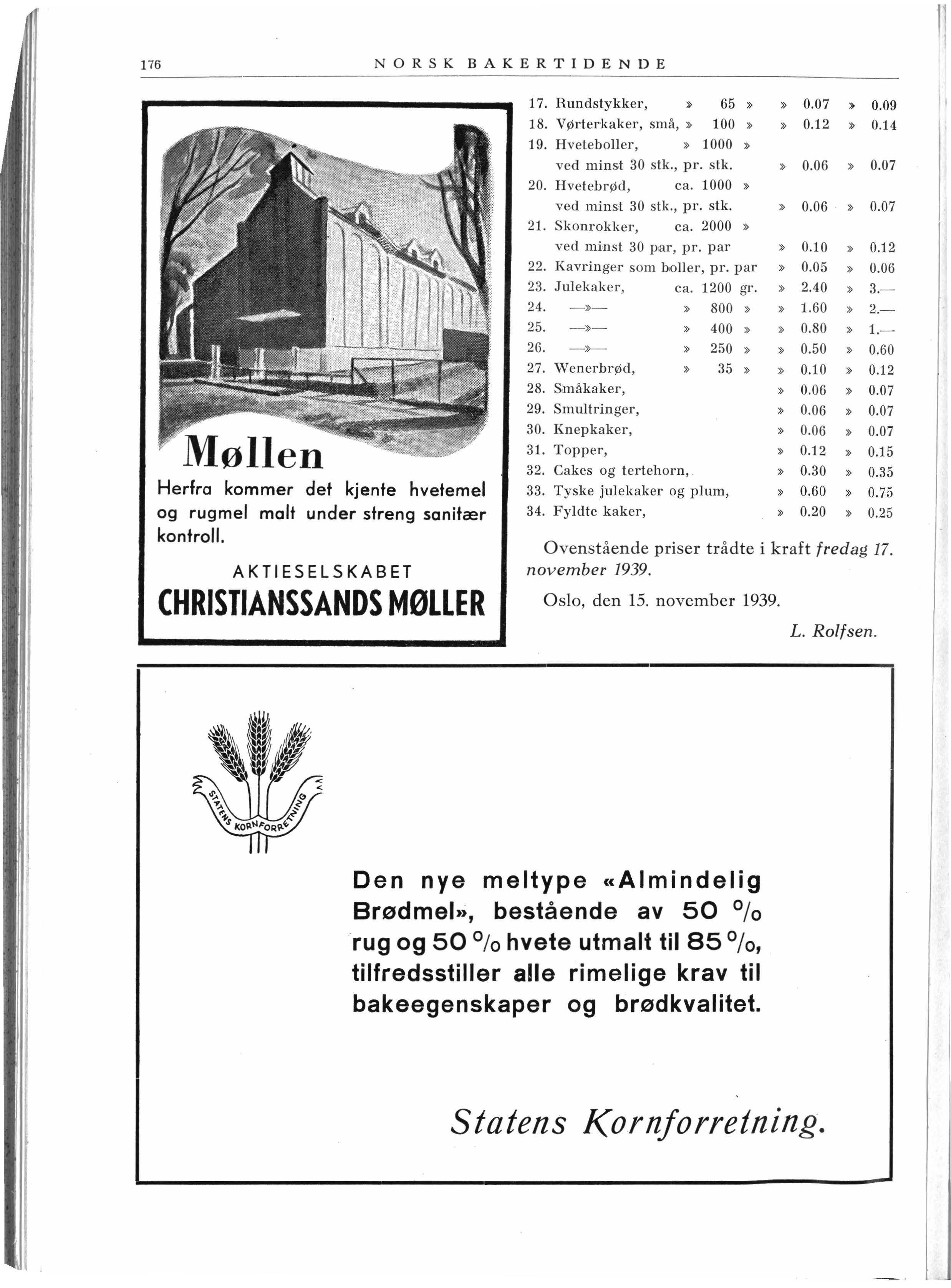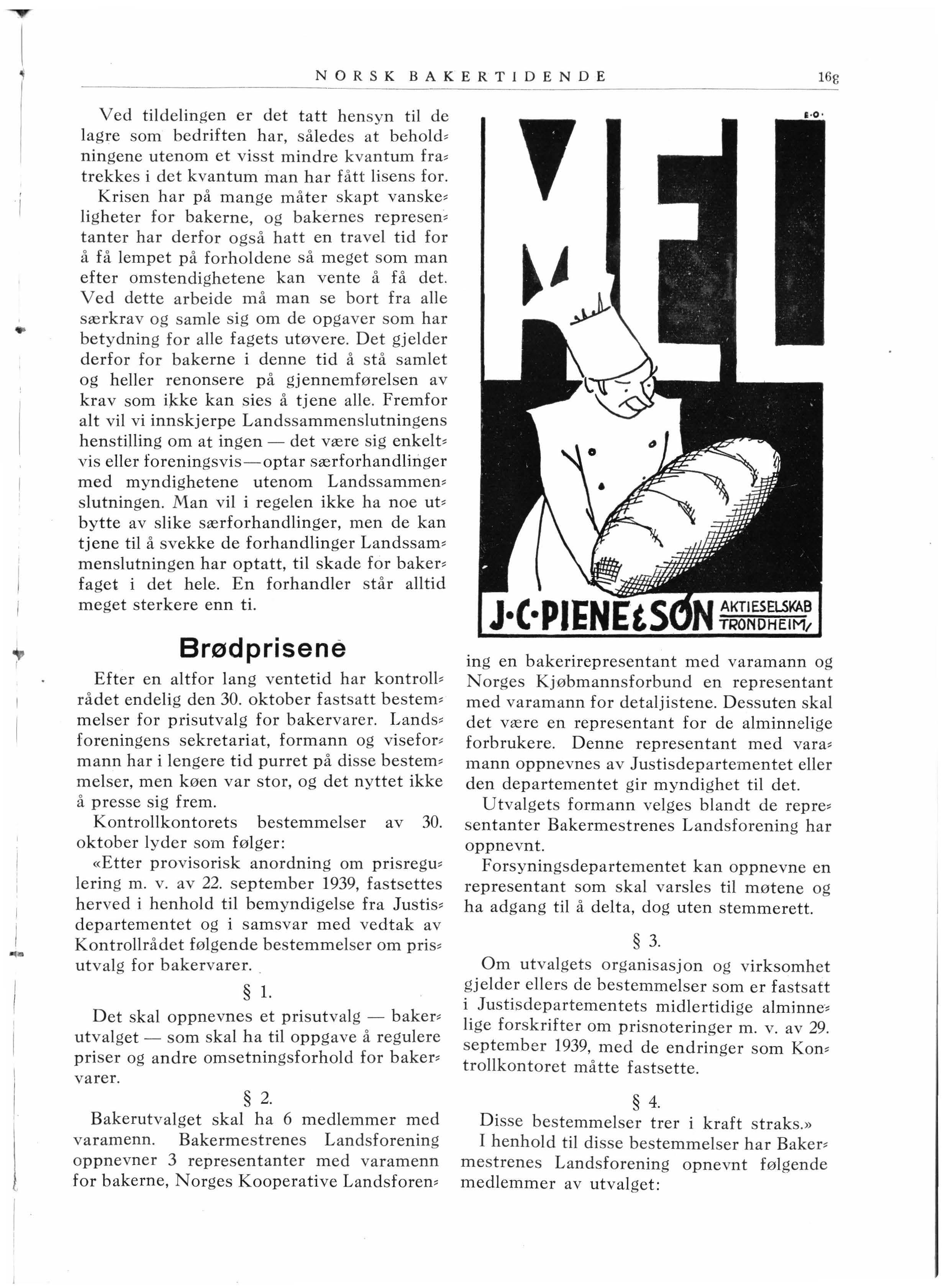 «Etter provisorisk anordning om prisregu, lering m. v. av 22. september 1939, fastsettes herved i henhold til bemyndigelse fra Justis• departementet og i samsvar med vedtak av Kontrollrådet følgende bestemmel se r om pris , utvalg for bakervarer . .