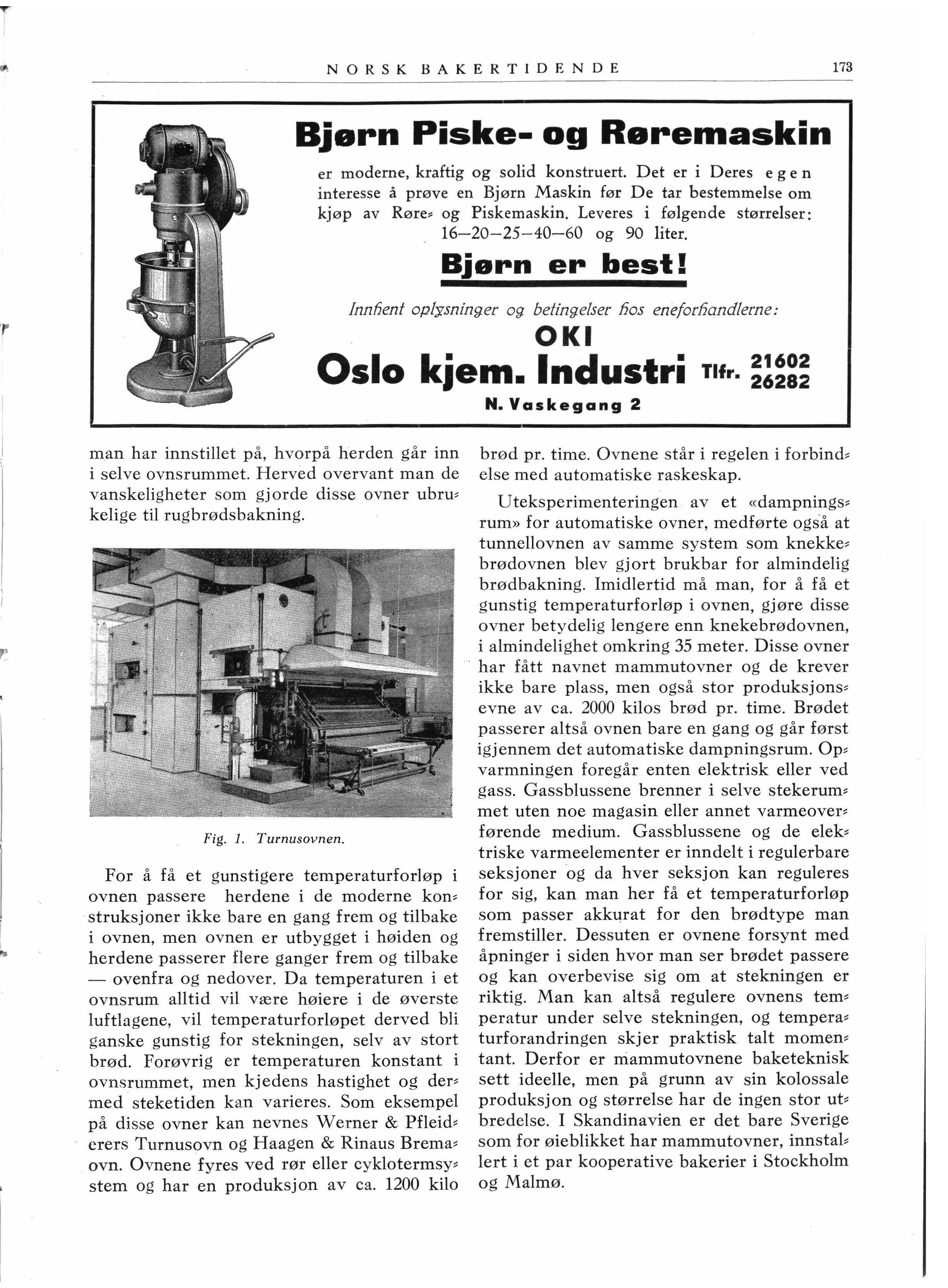 men dets lydige tjener, De siste 50 års ar• beide i bakerovnsindustrien har derfor gått ut på å konstruere typer som kan tilfredsstille dette krav, og serlig i de siste 20 år har utvik• lingen vært meget stor. Samtidig er kravene til en best mulig bakerovn, også takket være vitenskapelig forskning, sterkere precisert Derfor står vi kanskje, med alle de nye typer, i begynnelsen av en utvikling på dette om• råde som kan komme til å sette sterke spor i bakerfagets 1000 årige historie . Slutt.