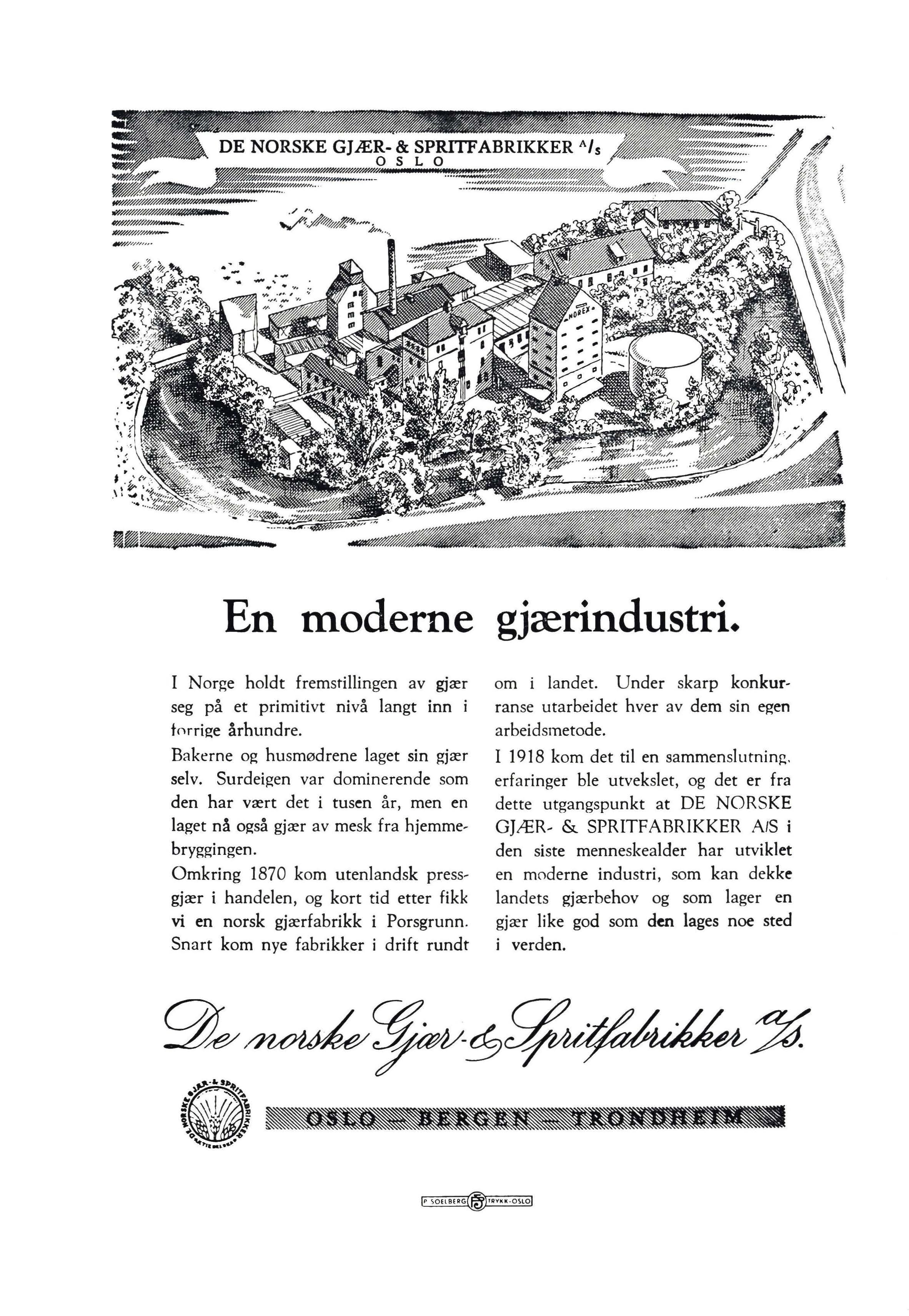 GJÆR- & SPRITFABRIKKER AIS i den siste menneskealder har utviklet en moderne industri, som kan dekke landets gjærbehov og som lager en gjær like god som den lages noe sted i verden.