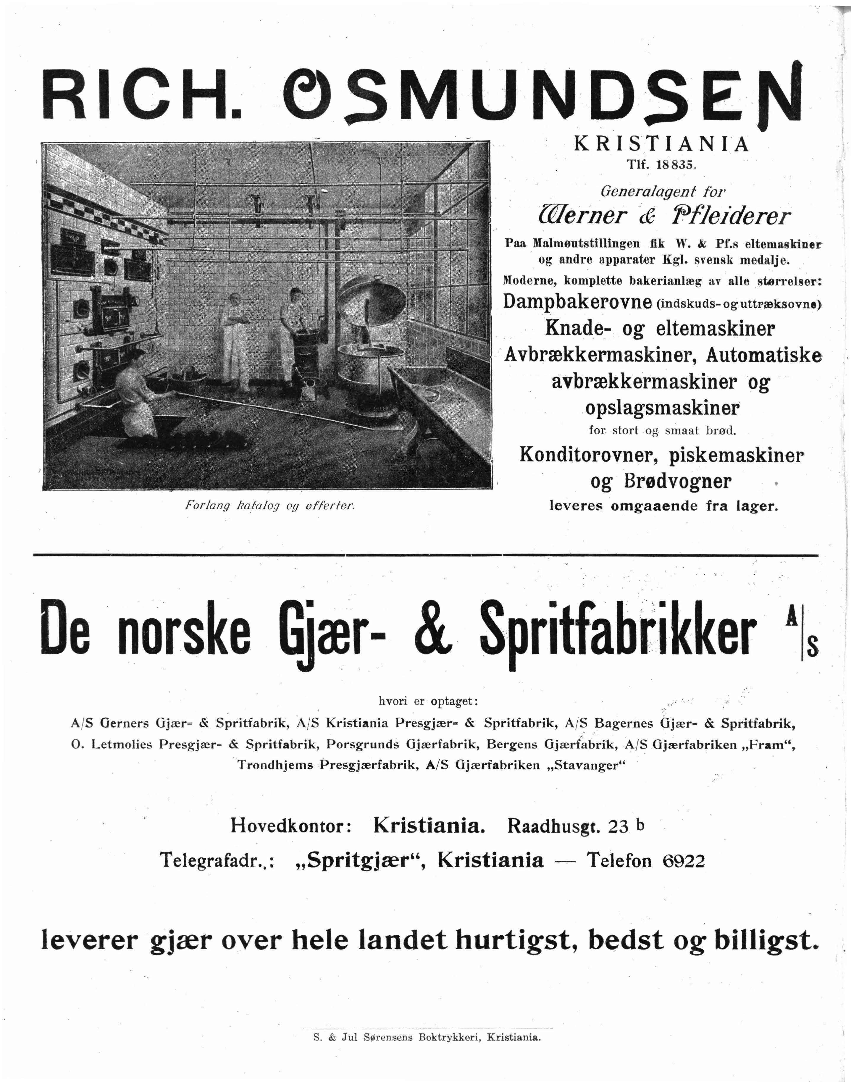 A /S Oerners Gjær= & Spritfabrik, A /S Kristiania Presgjær- & Spritfabrik, A j ~ Bagernes Gjær- & Spritfabrik, 0. Letmolies Presgjær = & Spritfabrik, Porsgrunds Gjærfabrik, Bergens Gjærfabrik, A / S Gjærfabriken "Fram'\ Trondhjems Presgjærfabrik, A / S Gjærfabriken "Stavanger"