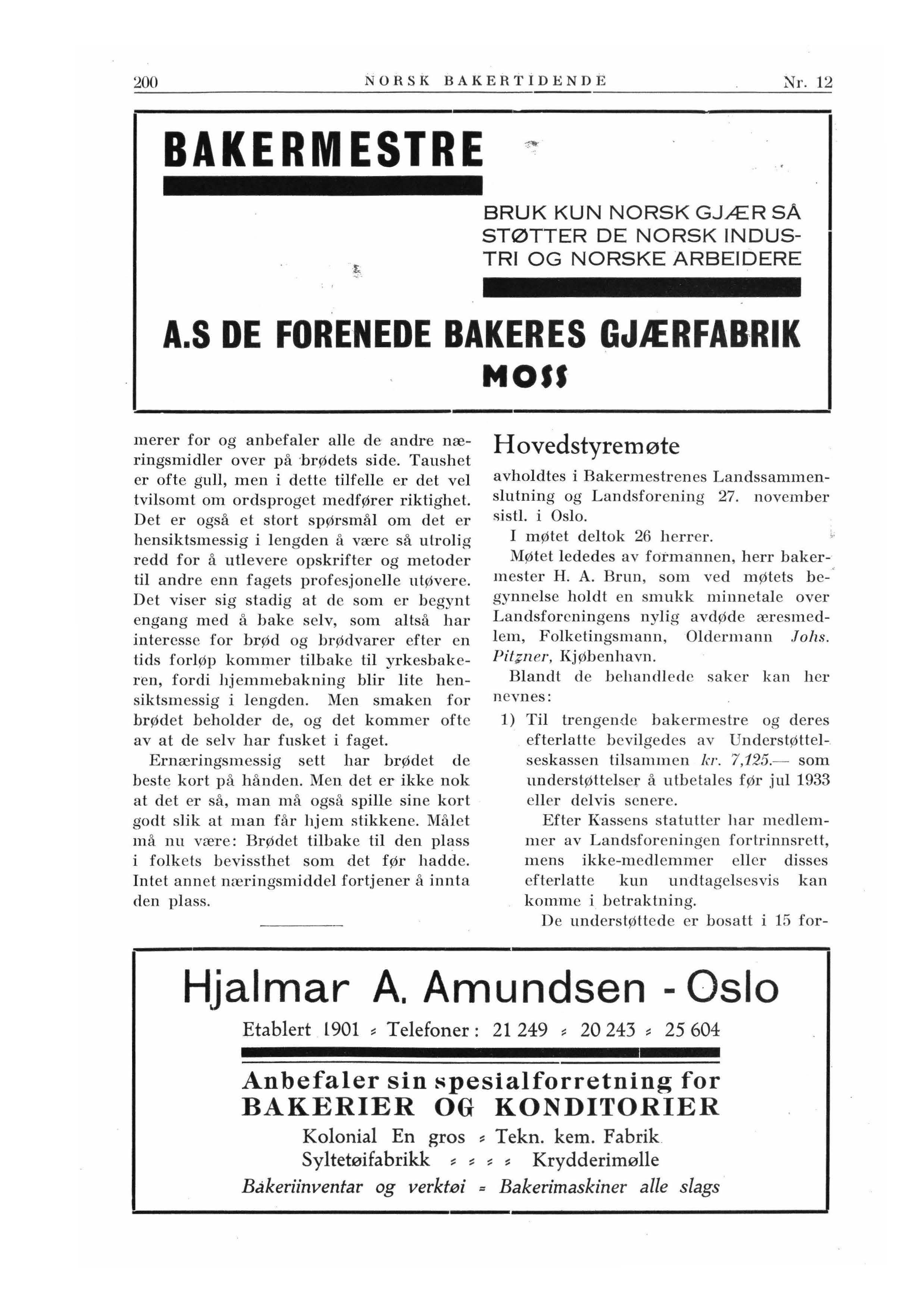 Vi vilde så gjerne at bladet også skulde være et forum for foreningsnyheter og andre m e ddelels er, hvor de forskjellige fagspfirsmål kund e drøftes kollegene sig imellem. Som d et nu er skrives b.ladel omtrent ut elukkend e av de samme penner fra gang til gang, og det er da ikke til å undg å at bladet for en k elt e til sine lid er kan synes tørt og e nsformi g Vi henstiller igj e n til hver især å slutte op om bladet, all e baker e får d et og det slnllde være det naturlig e forum for kollegene sig imell e rn.