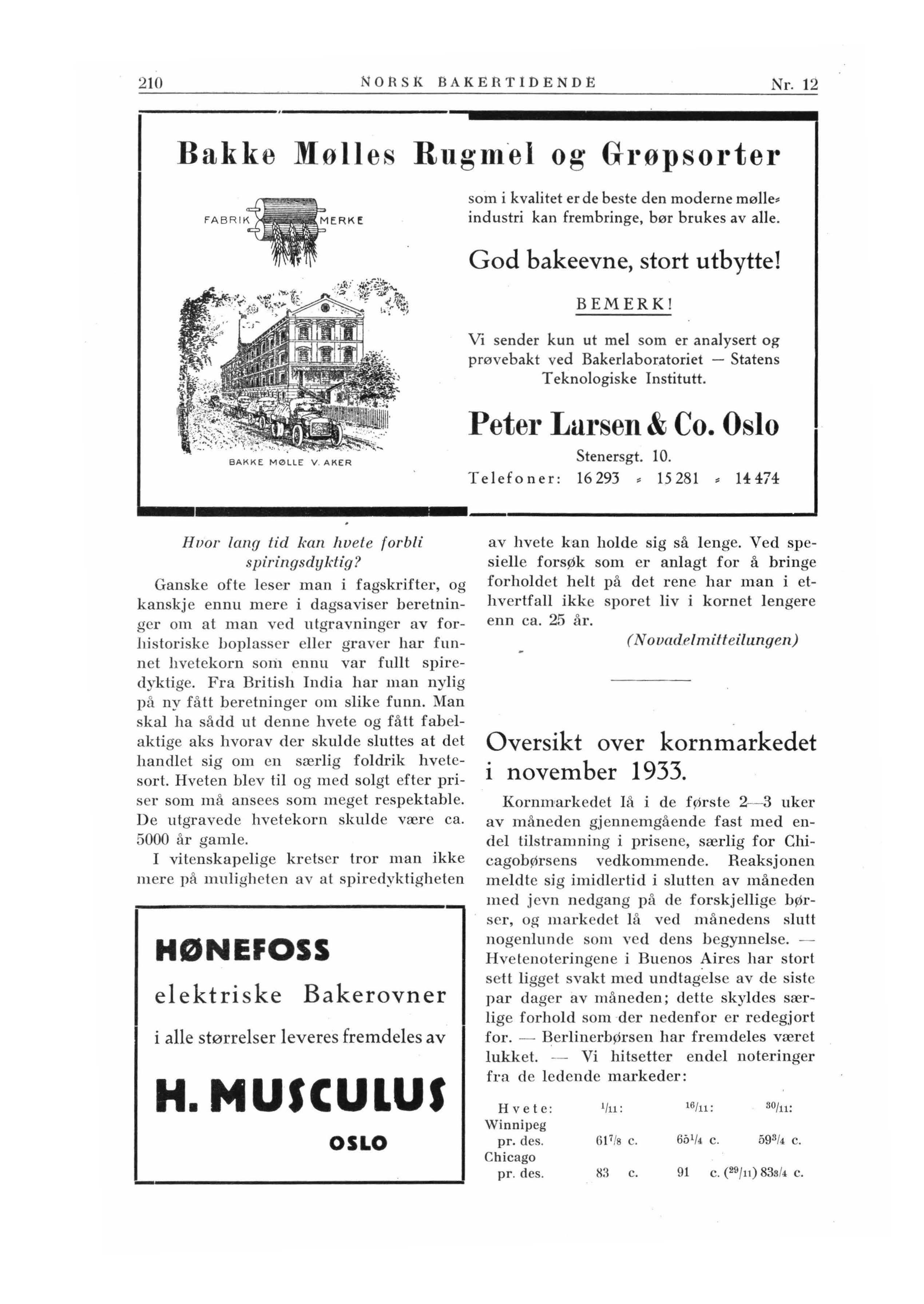Redaktør og forretningsfører : Ing. Leif Larsen. Teknologisk Institutt , Oslo - Telefon 63658. Posta dresse: Post bo x 2 2 4 9, 0 s I o M j. Utgitt av Bakermestrenes Landsforening.