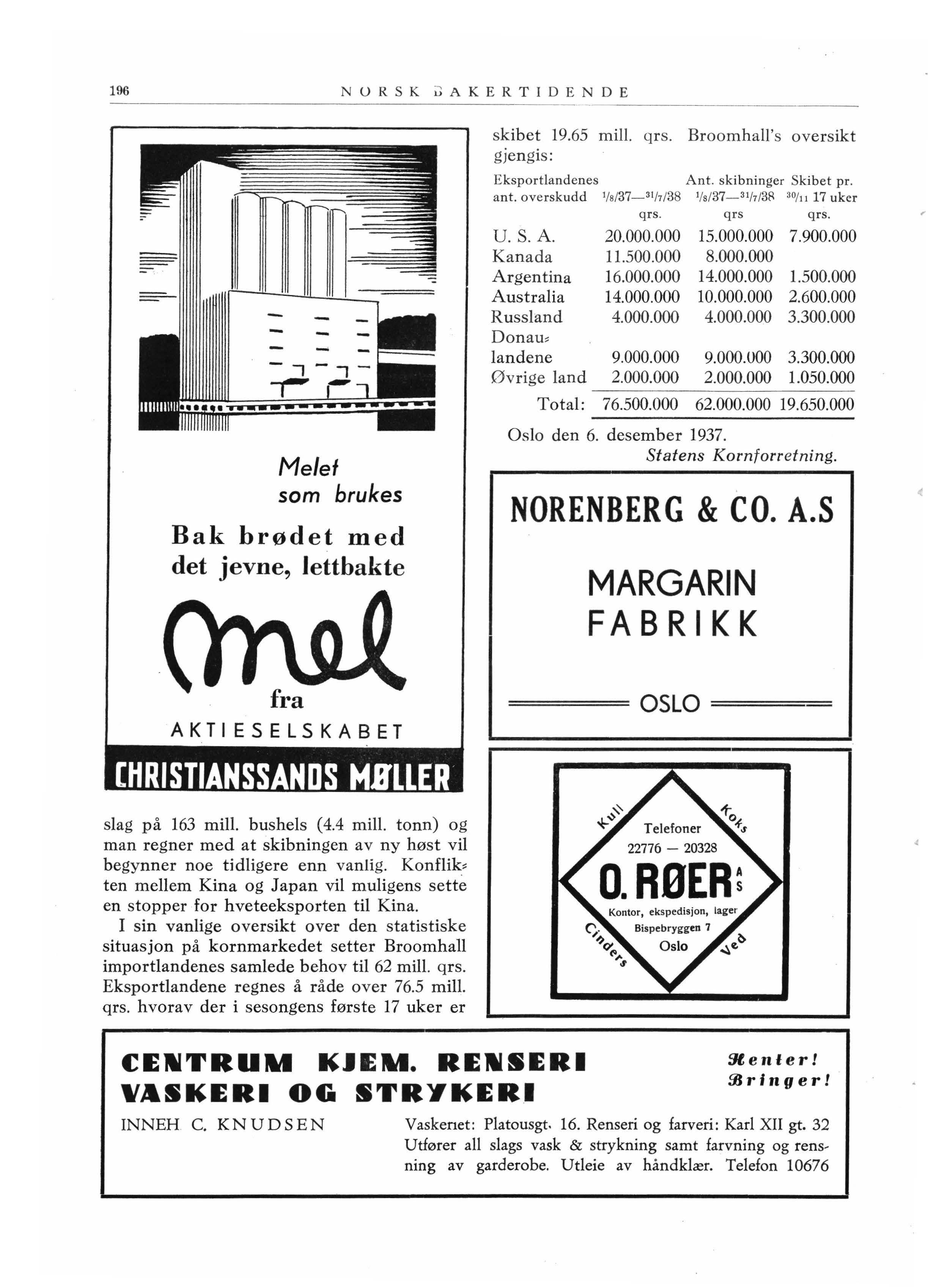 Oslo den 6. desember 1937. Statens Kornforr e tning.