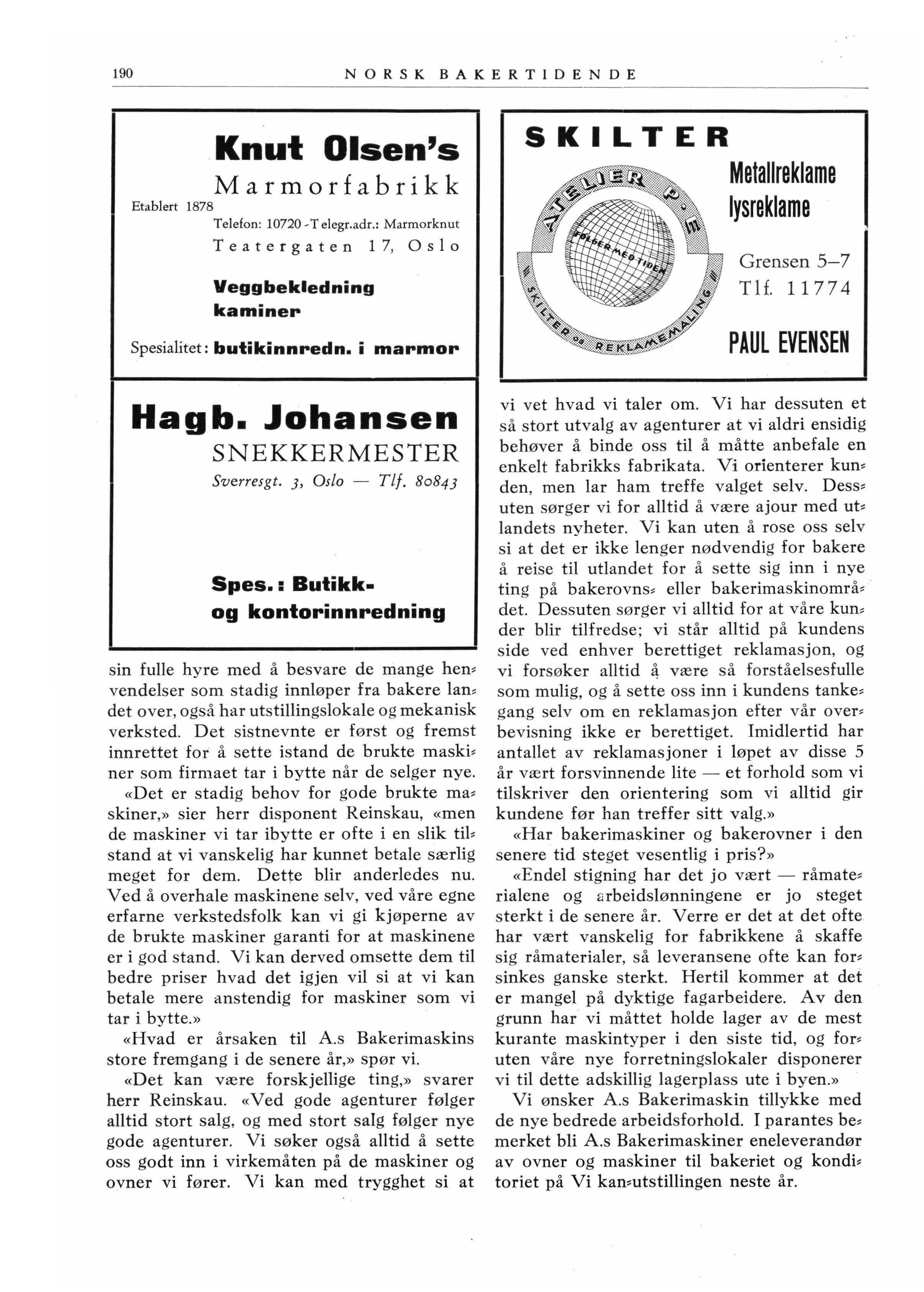 Vi ønsker A.s Bakerimaskin tillykke med de nye bedrede arbeidsforhold. I parantes be~ merket bli A.s Bakerimaskiner eneleverandør av ovner og maskiner til bakeriet og kondi, toriet på Vi kan,utstillingen neste år .